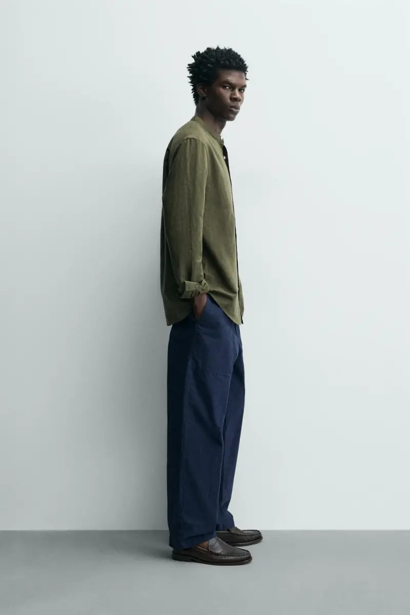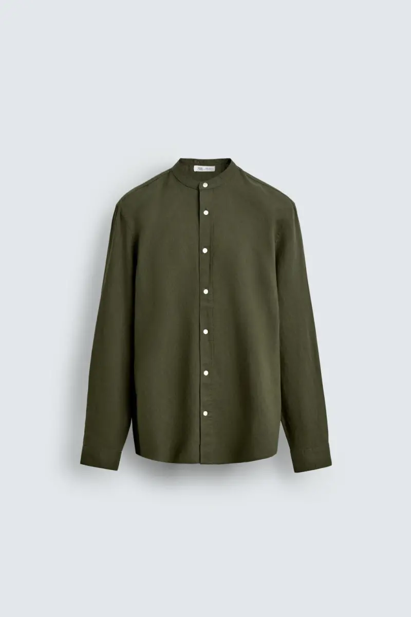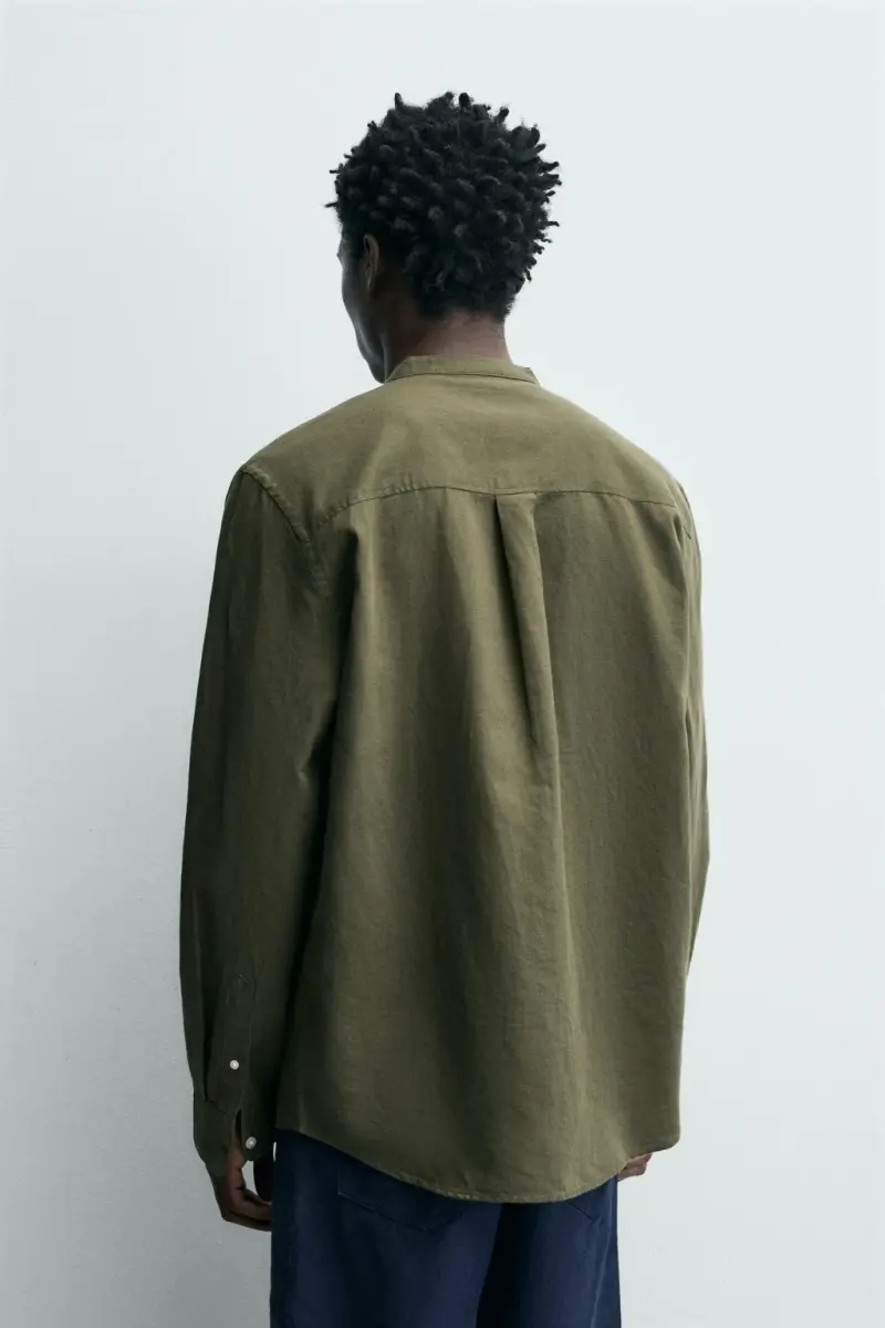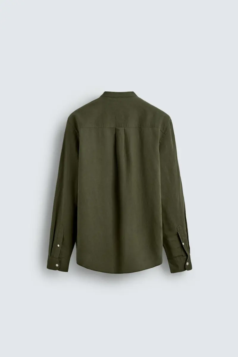PAMUKLU KETEN GÖMLEK-Haki