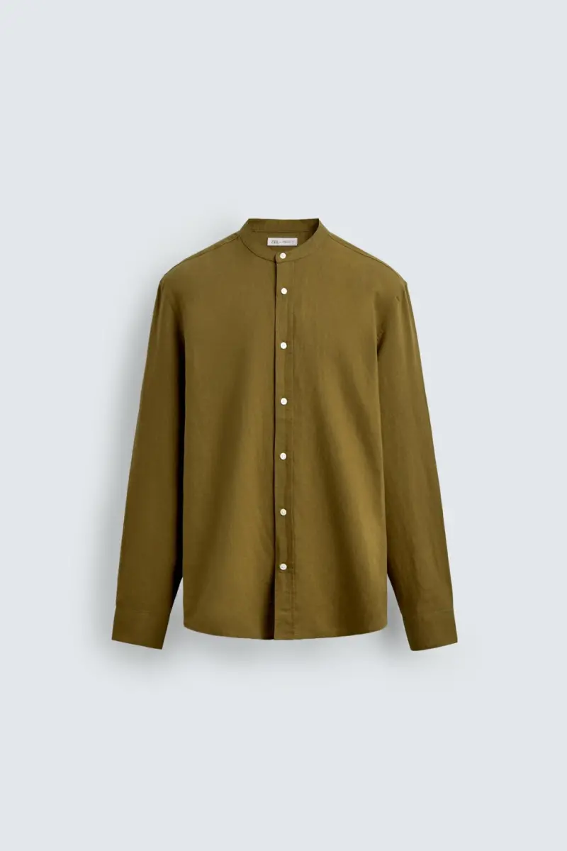 PAMUKLU KETEN GÖMLEK-Yağ yeşili