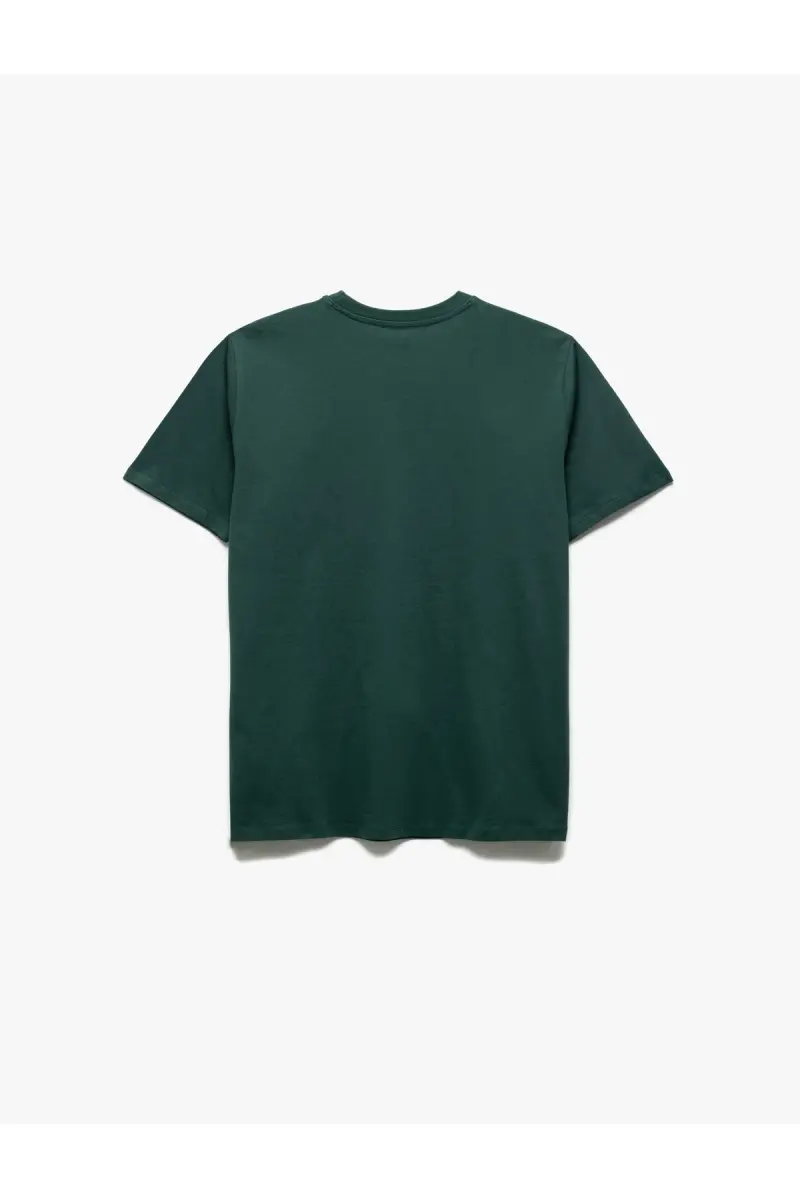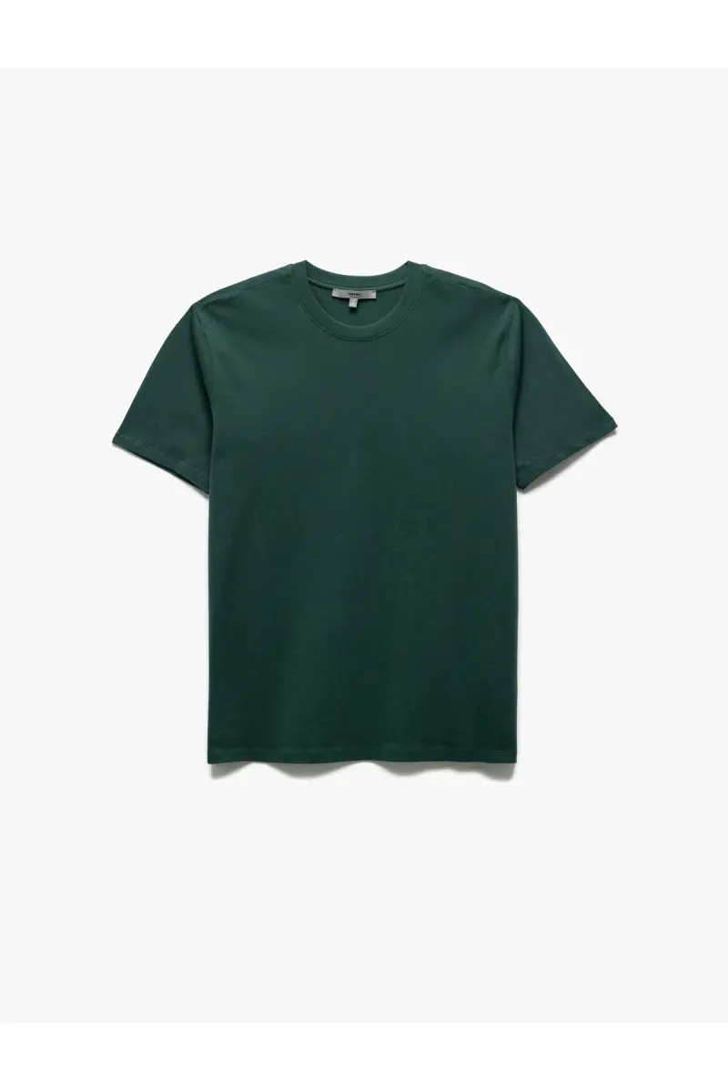 Pamuklu Kısa Kollu Bisiklet Yaka Basic Erkek Slim Fit Tişört-Yeşil
