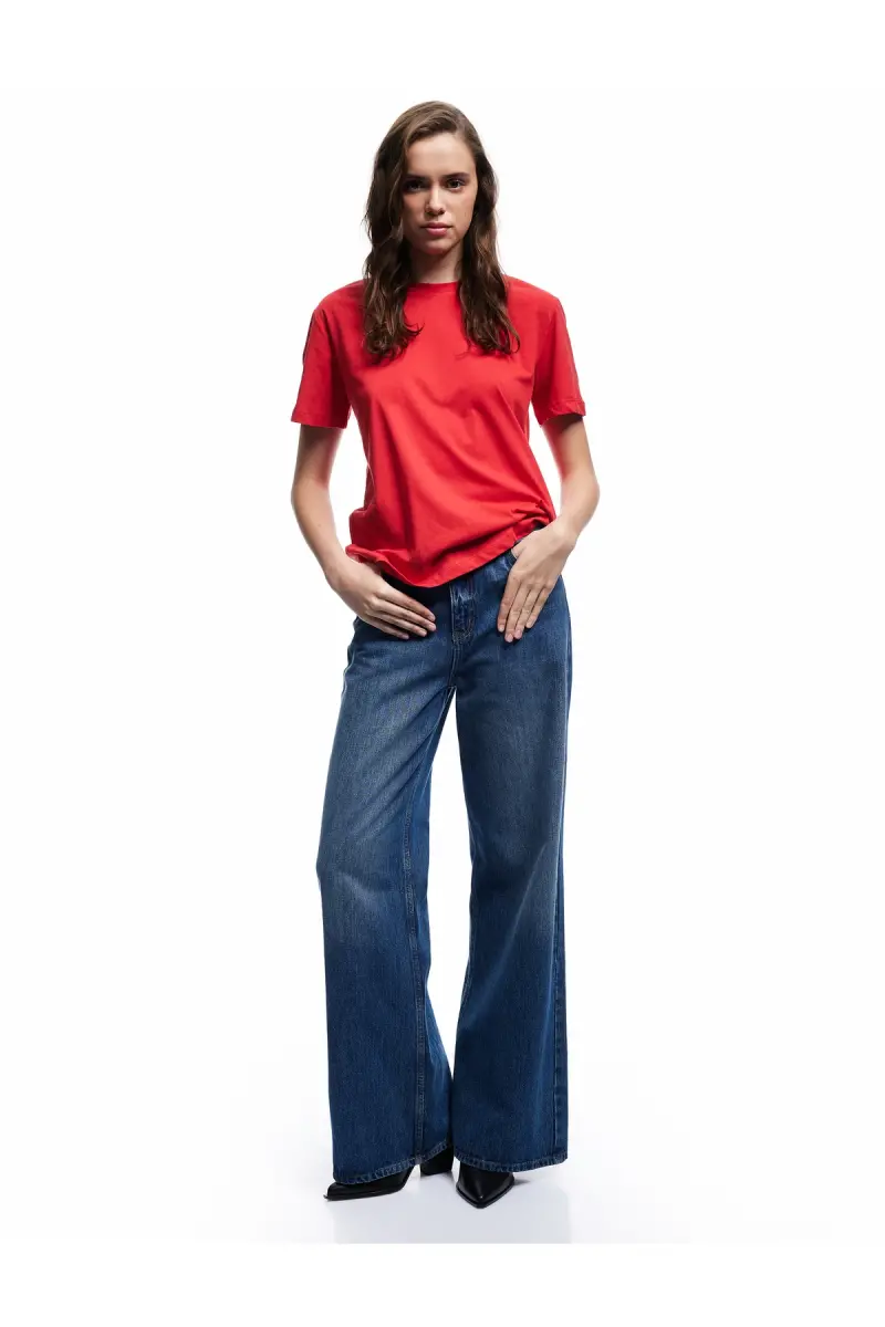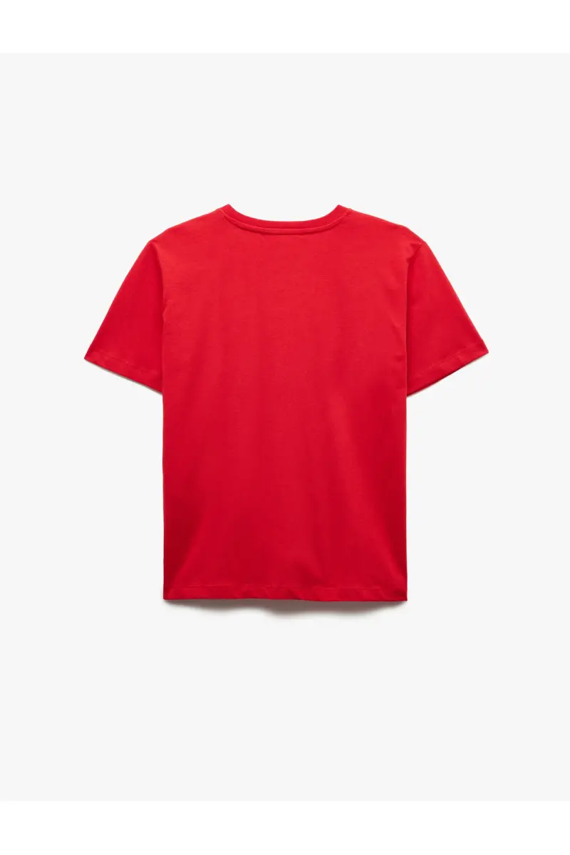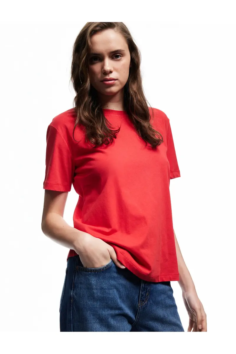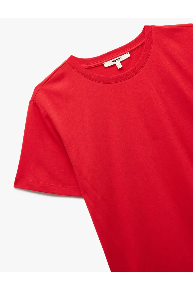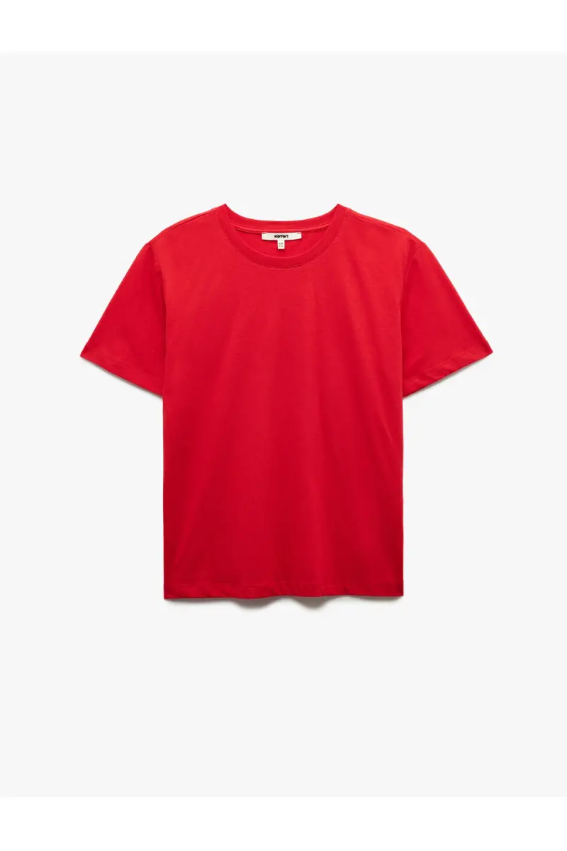 Pamuklu Kısa Kollu Bisiklet Yaka Basic Tişört-Kırmızı