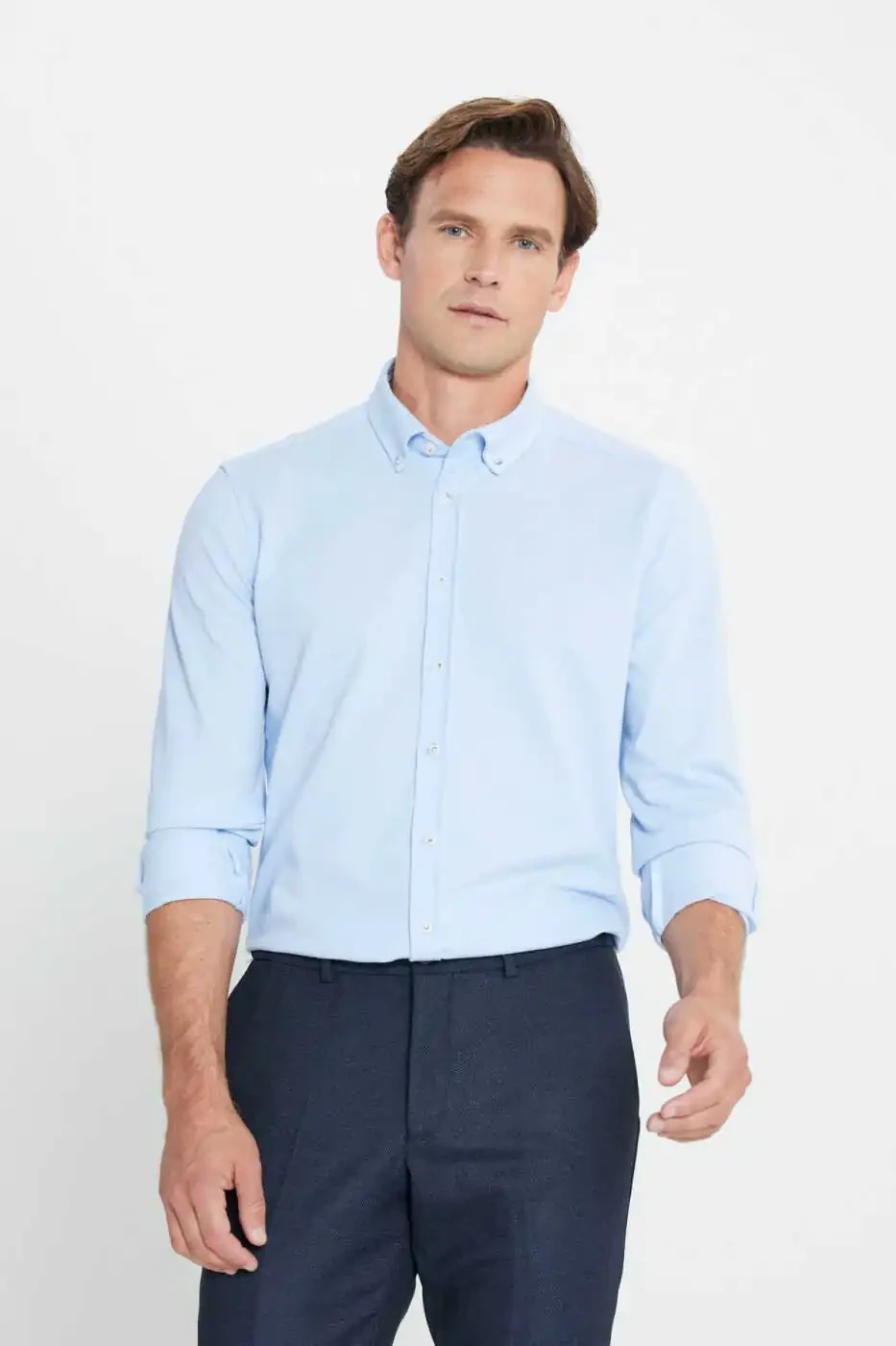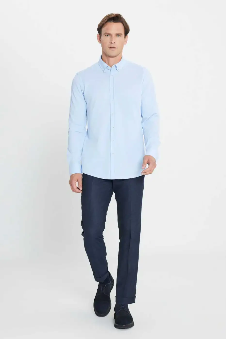 Paxta Slim Fit Ko'ylak - Tugmali Yoqa