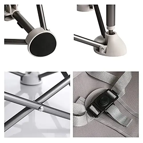PandaEar Ko'chma Chaqaloq Stulchasi Sayohat | Ichki va Tashqi Foydalanish uchun Qayishli Kompakt Katlanuvchan | Kemping, Plyaj, Maysaz uchun Ajoyib | Go'daklar, Bolalar, O'g'il bolalar, Qizlar (Kulrang)