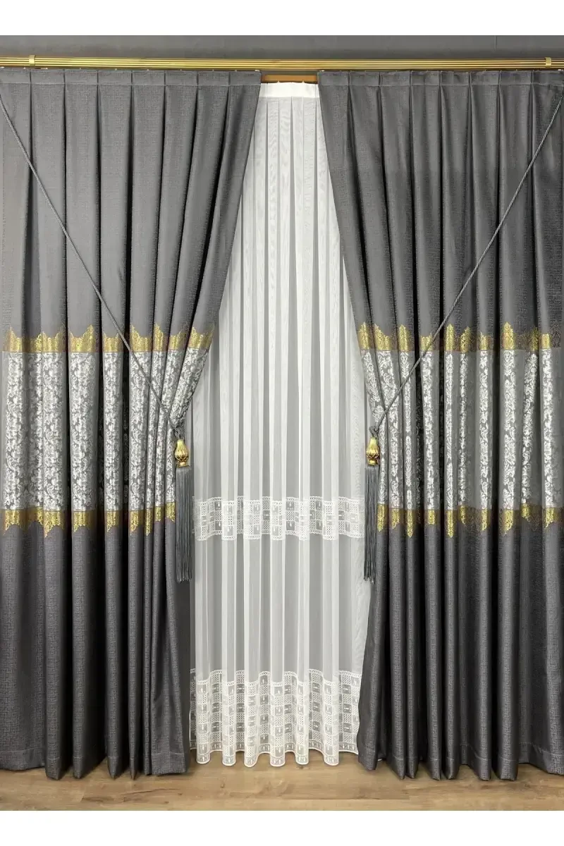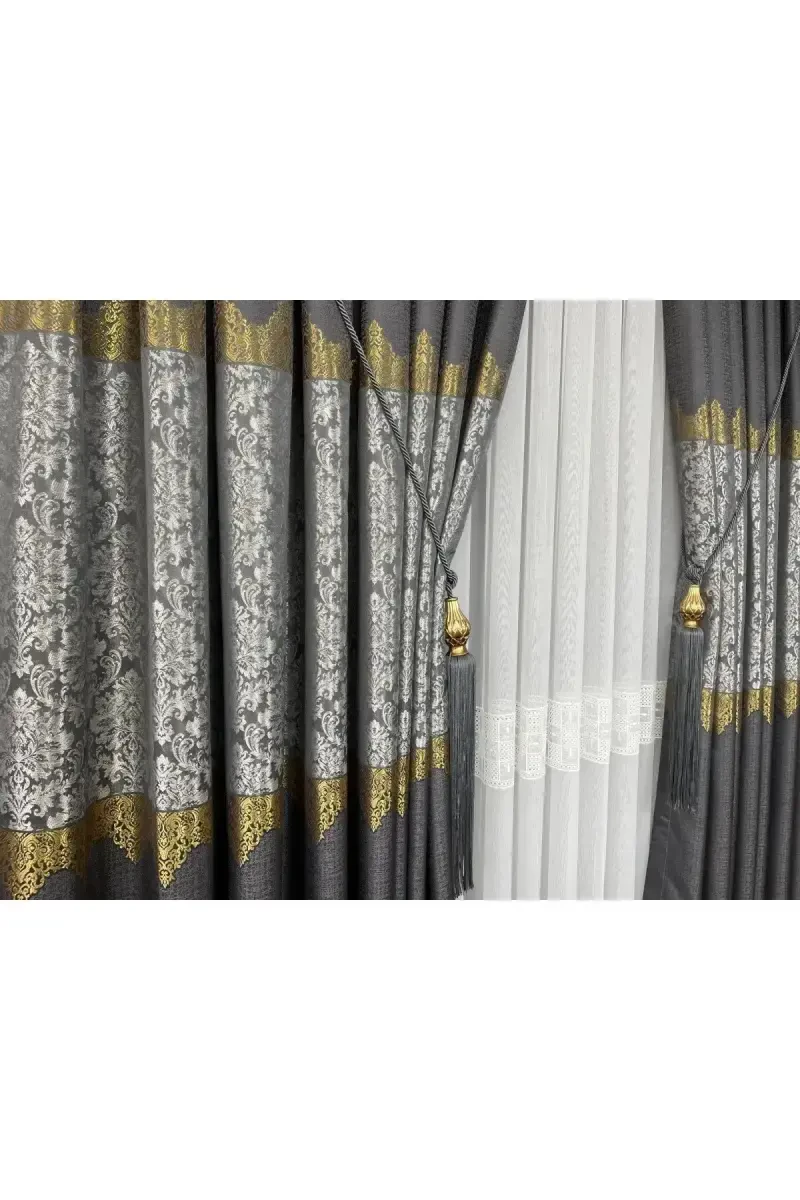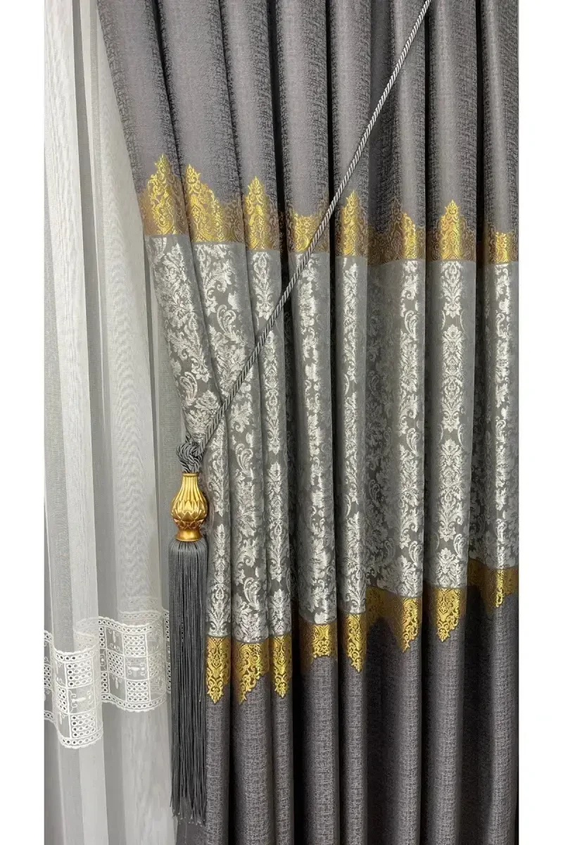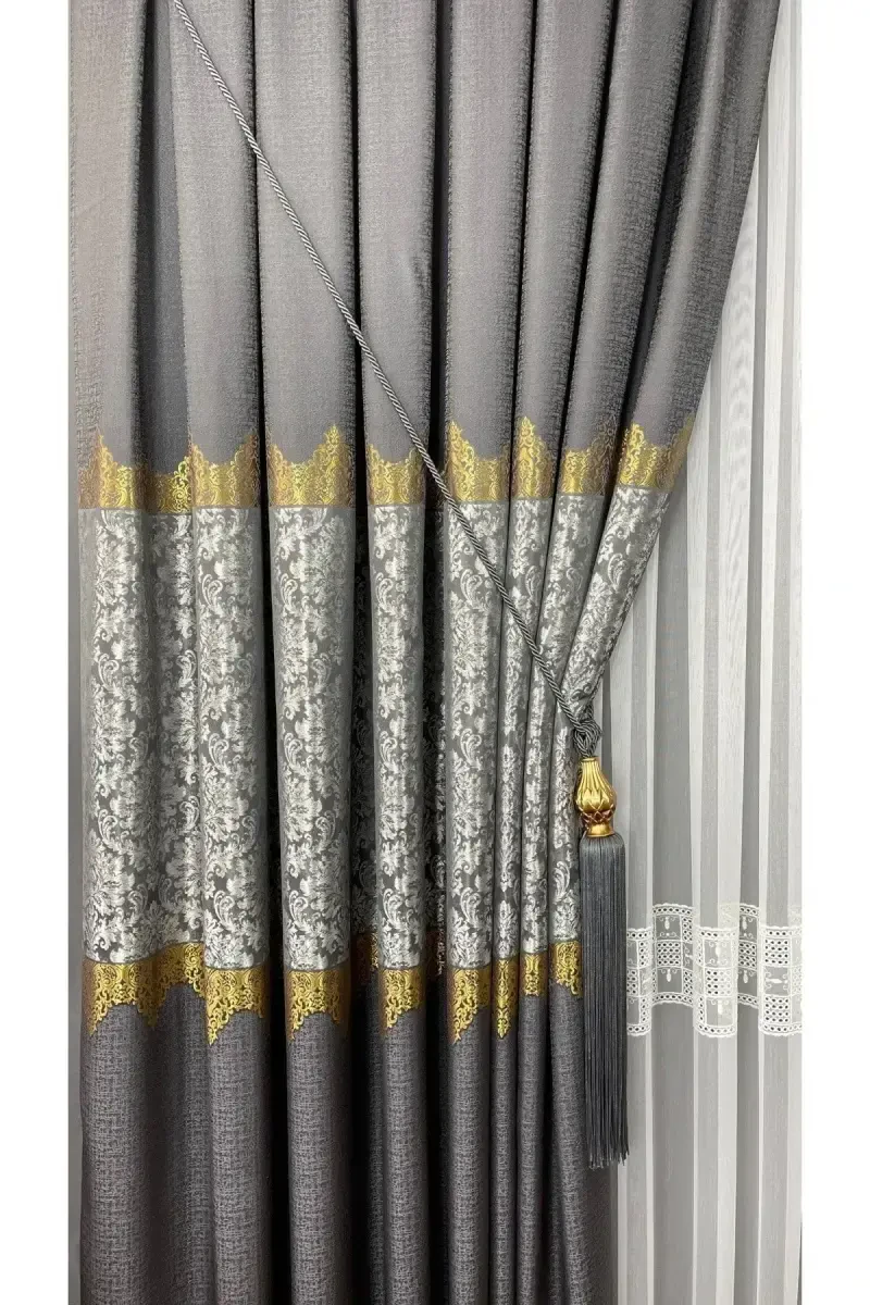 Yuka Home Kulrang Fon Parda | Jakarli Bir Qanot, Zich Burmali | Mehmonxona, Yotoqxona uchun Chiroyli Dizayn