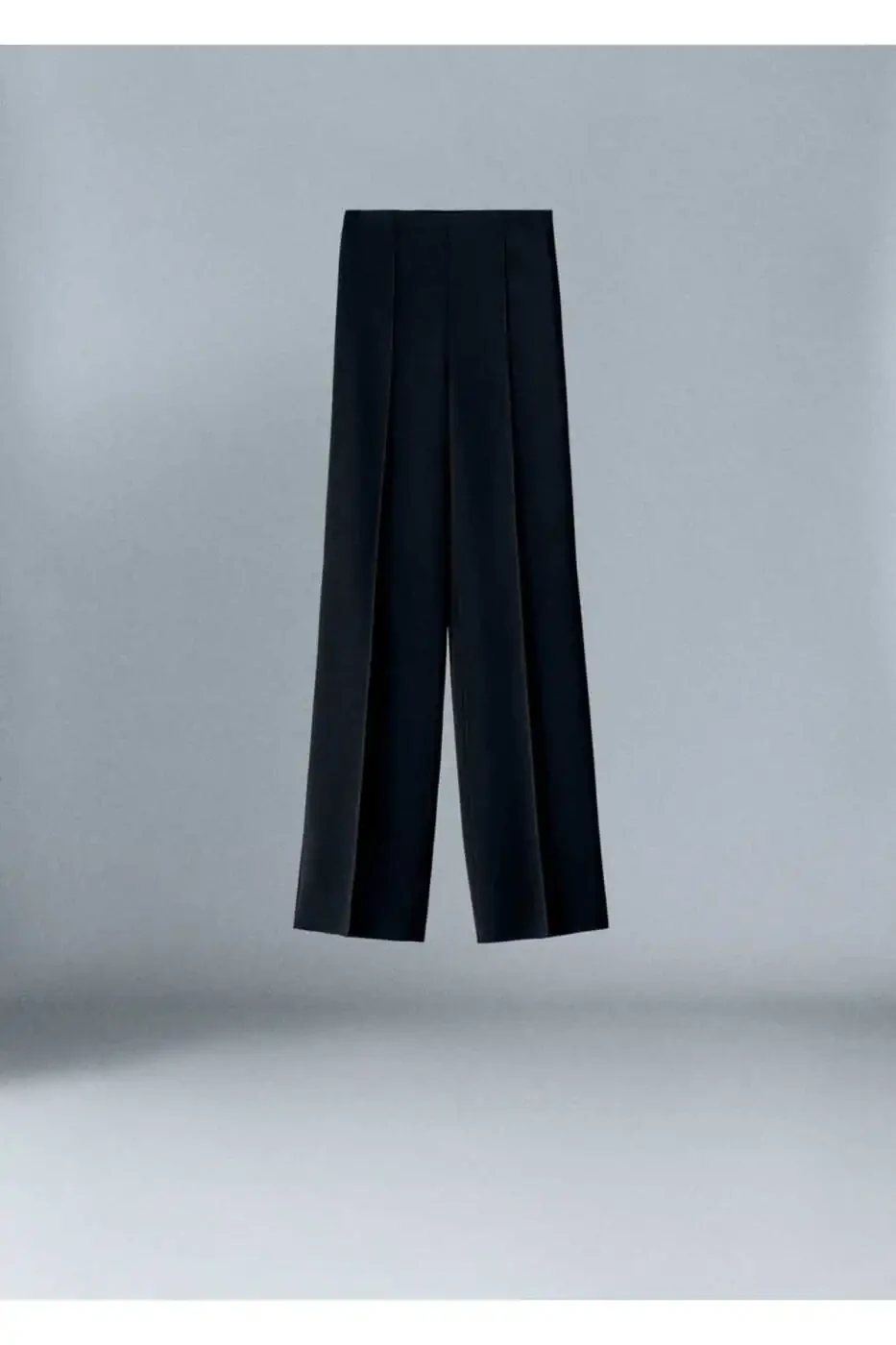 Palazzo Trousers, Long Trousers, Regular Waist Trousers, Zippered Trousers, Decorative Stitch Trousers, Capsule Collection, 49% Acetate, 48% Viscose, 3% Elastane, 15 Day Free Return
