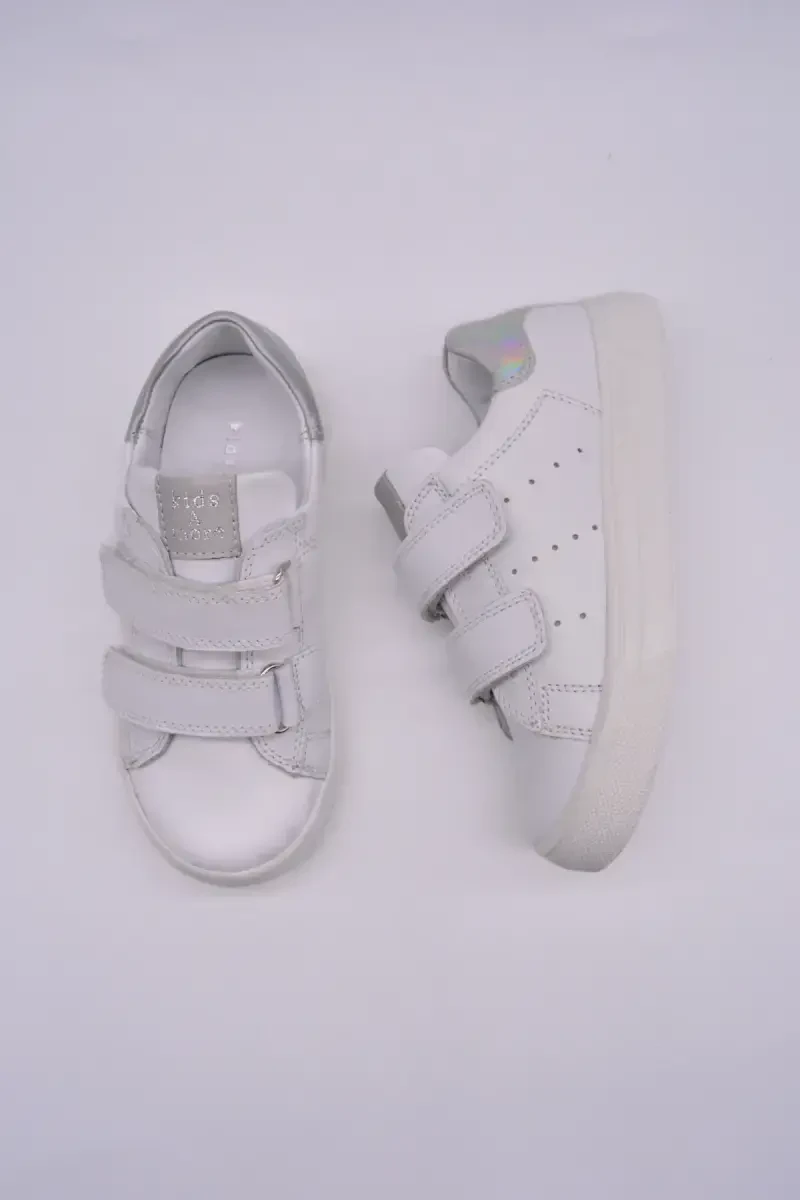 Girls' shoes, leather shoes, double velcro shoes, white shoes, silver shoes, Papillon shoes, children's shoes, comfortable shoes, ergonomic shoes, quality shoes