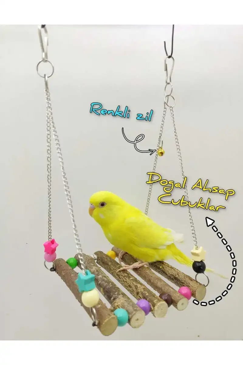 Give your beloved pet bird hours of fun with this natural wooden bell beaded swing, perfect for your feathered friend to enjoy!