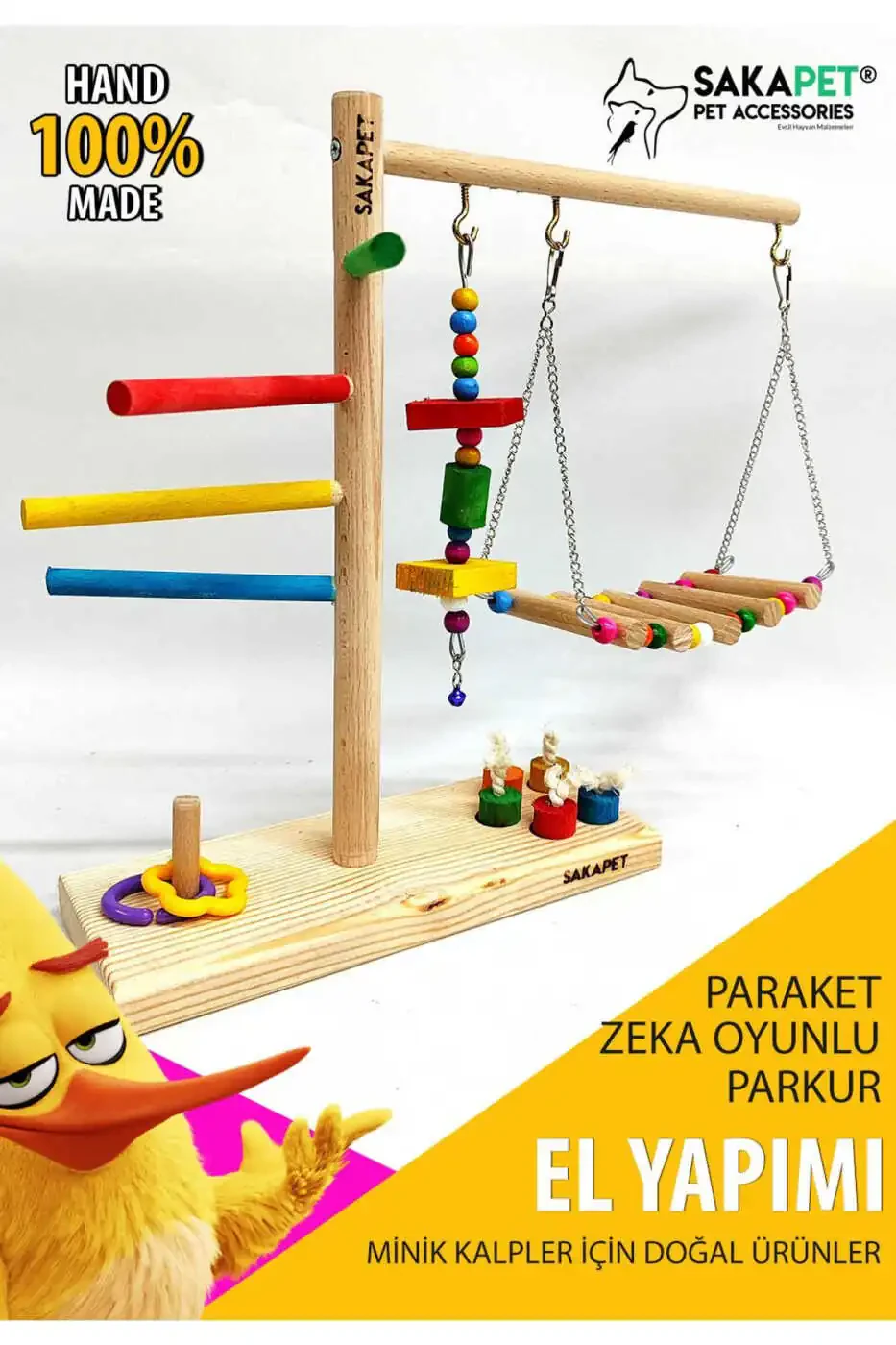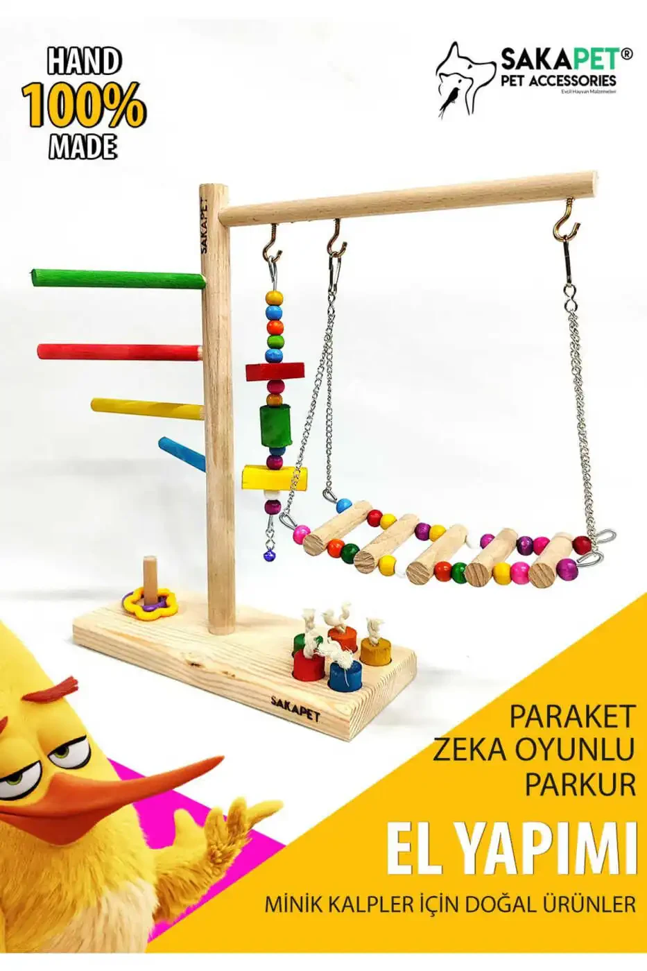 Paraket Interaktif Zeka Oyunlu Köprülü Mini Platform Ts05, evcil papağanlarınız için hem eğlenceli hem de eğitici bir oyun alanı sunar.