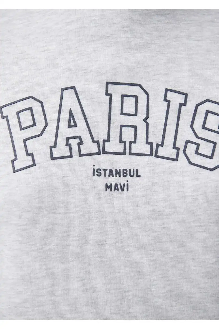 Combine style and comfort with the Paris Printed Hooded Grey Sweatshirt! This sweatshirt, which you can easily choose for your daily life, sports activities or meetings with your friends, offers unparalleled comfort with its soft and quality fabric.