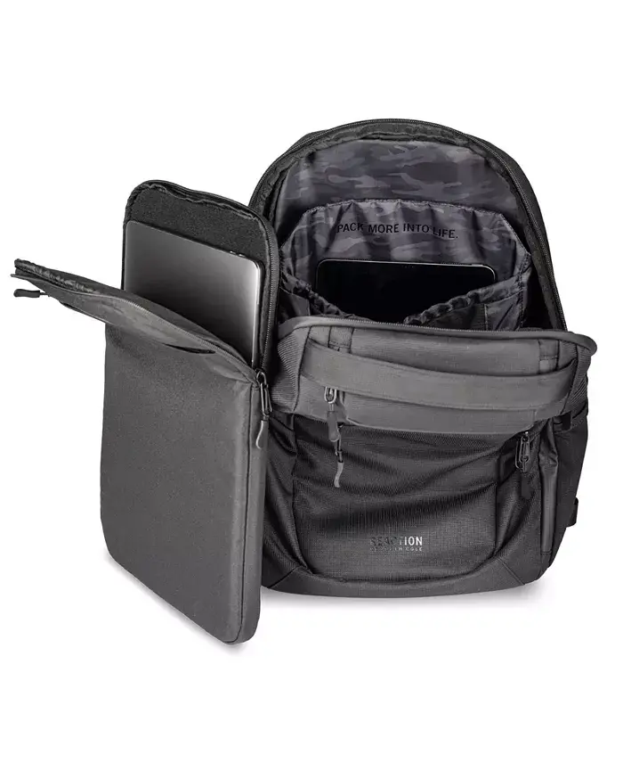 Maintain your style while carrying your technology with the Kenneth Cole Reaction Parker Tech Backpack. The Parker 17" Laptop Backpack with Removable Laptop Sleeve-Black is designed to meet the needs of modern life. This versatile backpack allows you to comfortably carry all your devices, tech essentials, and small accessories thanks to its removable laptop compartment and spacious main compartment. Working from anywhere is now possible! It offers long-lasting use with its stylish and abrasion-resistant polyester fabric and is backed by a limited lifetime warranty provided by the manufacturer.Designed to meet your technological needs, this backpack features a removable modular laptop compartment that fits most 16-inch laptops. It’s the perfect solution for taking only your essentials with you when heading to a quick meeting or traveling. The padded laptop compartment can comfortably accommodate 16-inch and even some 17-inch laptops. With 20 storage pockets, you don’t have to leave any of your belongings behind. The large front organization pocket is ideal for your tech accessories, cables, and personal items.The large front organization pocket allows you to store your tech accessories, cables, and personal items in an organized manner. The side mesh pockets keep your water bottle and other essentials within easy reach. The fleece-lined top pocket provides a secure storage space for your cell phone or glasses.You can comfortably carry it as a backpack or use the trolley tunnel to secure it to your suitcase during travel to give your shoulders a rest. When you only need your laptop, you can take the removable laptop compartment with you when heading to a meeting or working on the plane. The Kenneth Cole Reaction Parker Tech Backpack is the perfect companion to accompany you in your business life and travels.With its stylish design, durable material, and useful features, the Parker 17" Laptop Backpack with Removable Laptop Sleeve-Black will exceed your expectations. It is an ideal choice for daily use, business trips, or school. This backpack is not just a carrying tool but also an accessory that reflects your style. Produced with Kenneth Cole Reaction quality, this backpack will accompany you for many years and will always keep you stylish and organized. Keeping up with technology and maintaining your style has never been easier. Make your life easier and enjoy every moment with the Parker Tech Backpack.