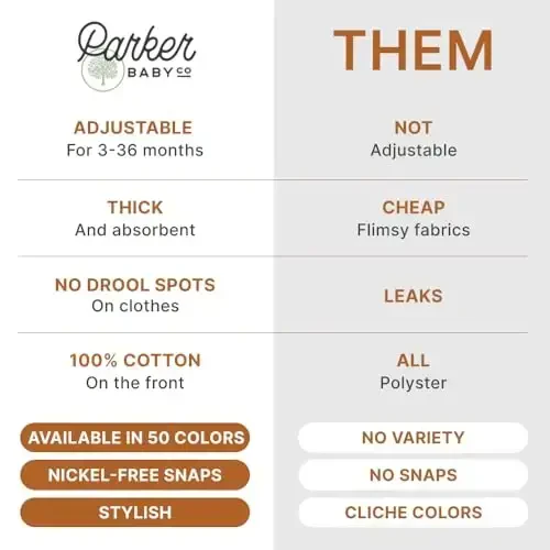 Parker Baby Bandana Drool Bibs 8-Pack are super soft, absorbent, and mess-ready bibs that keep your baby comfortable, dry, and stylish all day long. These bibs are made with 100% cotton on the front and soft, absorbent polyester on the back, catching drool, spit-up, and food spills while protecting your baby's sensitive skin. With adjustable, nickel-free snaps, these bibs grow with your baby, fitting babies from 3-36 months and providing a secure and comfortable fit without itchy fabrics. With eight stylish colors and patterns, you'll always have a clean bib on hand. Keep extras in your diaper bag, stroller, or car so you're always mess-ready on the go! Lightweight and durable, these bibs are soft enough for summer and comfortable enough for cooler months. Designed to complement any outfit, they combine practicality with effortless style. A must-have for new parents, this adorable, practical set makes the perfect baby registry addition. Thoughtfully designed in neutral or gender-specific color sets, it's a stylish, functional gift that parents will reach for every day. Parker Baby Bandana Drool Bibs are an essential accessory that makes life easier for parents while adding flair to your baby's wardrobe.