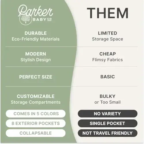 Parker Baby Co. Diaper Caddy, go'dak parvarishini osonlashtiradigan, chiroyli va tartibli yechimdir. Neytral rang ohanglari va zamonaviy dizayni tufayli har qanday go'dak xonasi dekoratsiyasiga moslashadi. Mahsulotning ko'p qirraliligi, ham uyda hamda sayohatlarda foydalanish qulayligini taqdim etadi. Sifatli materiali va mustahkam tuzilishi tufayli uzoq yillar davomida bexavotir foydalanishingiz mumkin. Go'dak dushi uchun mukammal bir sovg'a tanlovi bo'lgan bu organizer, yangi ota-onalarning hayotini osonlashtiradi va ularga tartibli bir boshlanish qilish imkoniyatini taqdim etadi. Parker Baby Co. sifati bilan ishlab chiqilgan bu mahsulot, ota-onalik sayohatingizda sizga ishonchli bir hamroh bo'ladi.