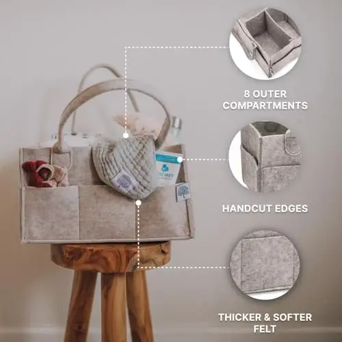 Parker Baby Co. Diaper Caddy is a versatile and stylish baby care product designed to make life easier for modern parents. This patented organizer helps you keep all the essential supplies you need in your baby's room or car neatly organized. You can safely and neatly store various items such as your baby's diapers, wipes, clothes, toys and changing pads. Moreover, thanks to its removable organizer part, it can also function as a stylish basket that you can use as a toy storage box or for different purposes as your baby grows.Parker Baby Diaper Caddy is designed not only to be practical but also to complement your baby's room decoration. With its neutral color tones and stylish design, it looks great on your changing table, dresser or next to the diaper pail. Sturdy exterior pockets provide extra storage space, making it easy to access everything you need during your baby care routine. This saves you time during midnight feedings or emergencies.Portability is also an important feature of this product. Thanks to its long and durable handle, you can easily carry this lightweight organizer. Whether at home or on the go, you can have it with you whenever you need it. Especially on car journeys, you can use it as a car organizer to keep everything your baby may need organized and easily accessible. It is also ideal for storing breast pumps and accessories, baby bath products or supplies needed for night feedings next to your bed. Parker Baby Diaper Caddy will be a perfect companion on your parenting journey.This versatile baby care organizer is also a thoughtful and practical baby shower gift. As a must-have product for new parents, it is an indispensable part of baby registration lists. It is the best way to offer expectant parents a stylish, organized and useful solution for their baby's care. Gift them both convenience and style with the Parker Baby Diaper Caddy.Made of high-quality soft felt, the Parker Baby Diaper Caddy is designed to last. Thanks to its durable material, you can use it safely for many years. In addition, thanks to its easy-to-clean feature, it offers a hygienic use. We are so confident in the quality of our product that we offer a satisfaction guarantee. Make your baby care more organized, more stylish and easier with Parker Baby Diaper Caddy. As the best way to organize your baby's diapers, this product will also be an indispensable part of your baby care bag and baby room organizer.