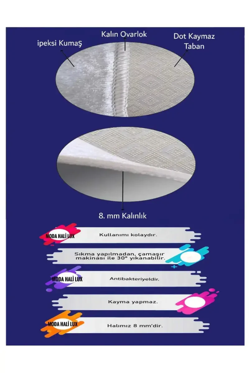 Представляем вам детский ковер с парковкой, который перенесет мир детских фантазий в ваш дом и обеспечит веселую и безопасную игровую площадку! Этот ковер, изготовленный компанией MODA HALI LUX, является идеальным вариантом для детских комнат. Благодаря серому цвету и симпатичному рисунку дороги с парковкой он будет поддерживать воображение ваших детей и придаст стильный вид их комнатам. Наш ковер, изготовленный из высококачественных материалов, не содержит никаких веществ, которые могут нанести вред здоровью ваших детей. Благодаря антистатическим, антиаллергенным и антибактериальным свойствам ваши дети могут играть в гигиеничной обстановке. Кроме того, он не пылит и не оставляет ворса, что сводит к минимуму риск аллергических реакций. Высота ворса нашего ковра, составляющая 8-10 мм, обеспечивает мягкое прикосновение и позволяет вашим детям комфортно играть. 4 мм губка и нижняя точечная основа весом 500 г предотвращают скольжение ковра и обеспечивают безопасное использование. Благодаря теплоизоляционным свойствам он также согревает комнату ваших детей. Этот ковер также очень легко чистить, его можно стирать в стиральной машине при 30° без отжима и сушки, без использования смягчителя. Благодаря грязе- и пятноотталкивающим свойствам он также прост в использовании. Детский ковер с парковкой, изготовленный с учетом здоровья и безопасности ваших детей, - отличный выбор для того, чтобы они могли наслаждаться веселой и безопасной игровой зоной. Помните, чтобы продлить срок службы ковра, следите за тем, чтобы не тереть пылесосом края оверлока при уборке пылесосом. Это предотвратит образование катышков на краях оверлока с течением времени. Этот ковер, подходящий для использования в любое время года, станет незаменимым атрибутом детских комнат!