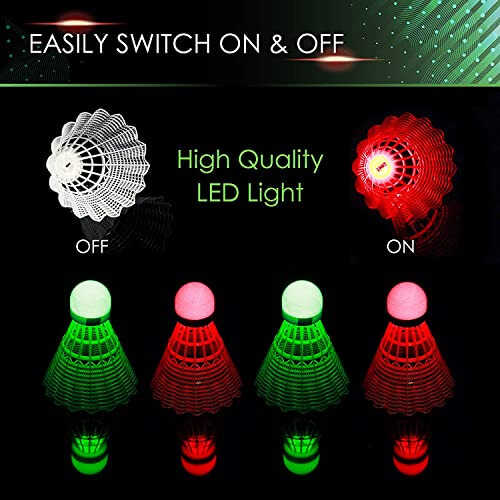 Gece badminton oynamak için mükemmel bir seçim olan bu 4'lü badminton şartları, karanlıkta parlayan özel bir tasarıma sahiptir. Özel malzemeleriyle donatılmış bu şartlar, dış mekan oyunlarınız için mükemmel bir görsel şölen sunar. Gece oyunlarında daha iyi görünürlük sağlayan bu şartlar, oyununuzu daha eğlenceli ve heyecanlı hale getirir. Ayrıca, dayanıklı yapıları sayesinde uzun süreli kullanım sağlar.
