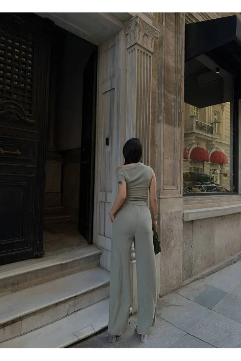EKİM STORE tarafından sunulan Pastel Yeşili Asimetrik Bluz Pantolon Takım ile şıklığı ve rahatlığı bir arada yaşayın. Bu özel tasarım, fitilli kumaşı ve asimetrik kesimiyle dikkat çekiyor. Gerek günlük kullanımda gerekse özel etkinliklerde rahatlıkla tercih edebileceğiniz bu takım, gardırobunuzun vazgeçilmezi olacak. Esnek ve ferah kumaşı sayesinde gün boyu konfor sunarken, her kombine uyum sağlayarak stilinizi ön plana çıkarmanıza yardımcı olur. Marka modelden esinlenerek üretilmiş olan bu takım, hem modern hem de zarif bir görünüm vadediyor. Pastel yeşilinin huzur veren tonu, üzerinizde enerjik ve taze bir hava estirecek. Bel kısmındaki lastik detayı, vücudunuza tam oturarak kusursuz bir siluet oluşturur. Fotoğraflarda gördüğünüz gibi birebir aynı ürün olup, çekimden kaynaklı ufak renk tonu farklılıkları gösterebilir. Satıcısı olarak ürünü kendim de kullanıyorum ve kumaşının rahatlığına hayranım. Şık ve rahat bir kombin arayanlar için ideal bir seçenek. Güzel günlerde kullanmanız dileğiyle!