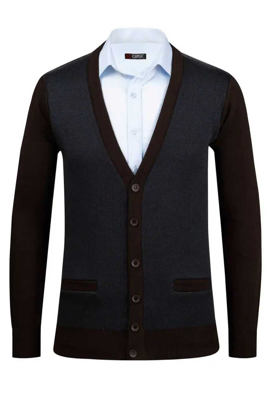 Designed to add sophistication and a modern touch to your everyday style, the Striped Knit Men's V-Neck Cardigan is the perfect choice for men who value both comfort and style. Crafted from soft and high-quality knit fabric, our cardigan provides all-day comfort with its gentle touch against your skin. The V-neck detail provides a stylish look, while the buttoned pockets offer a practical design. The patterned steel knit design creates a modern look that will complement any outfit. Its classic fit ensures a perfect fit for all body types.