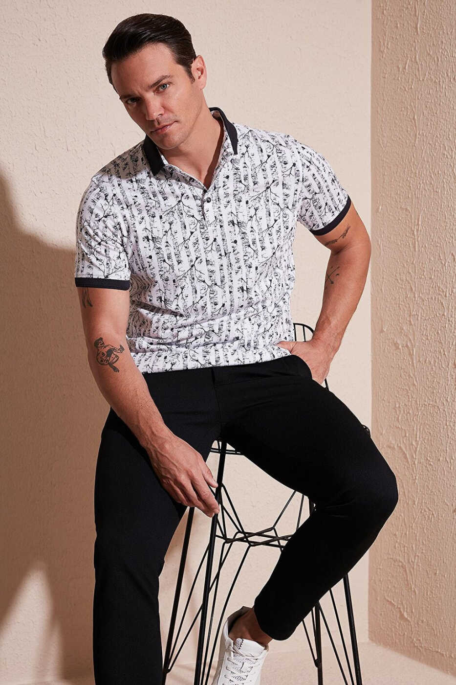 Feel free in any setting with the Patterned Cotton Slim Fit Polo T Shirt 646B3490, combining style and comfort. This polo shirt, made of soft and breathable cotton fabric, provides all-day comfort, and its slim fit cut fits your body perfectly. Its attractive patterns and classic polo collar detail help you complete your style. Patterned Cotton Slim Fit Polo T Shirt 646B3490 is an ideal choice for everyday wear, business meetings or special occasions.