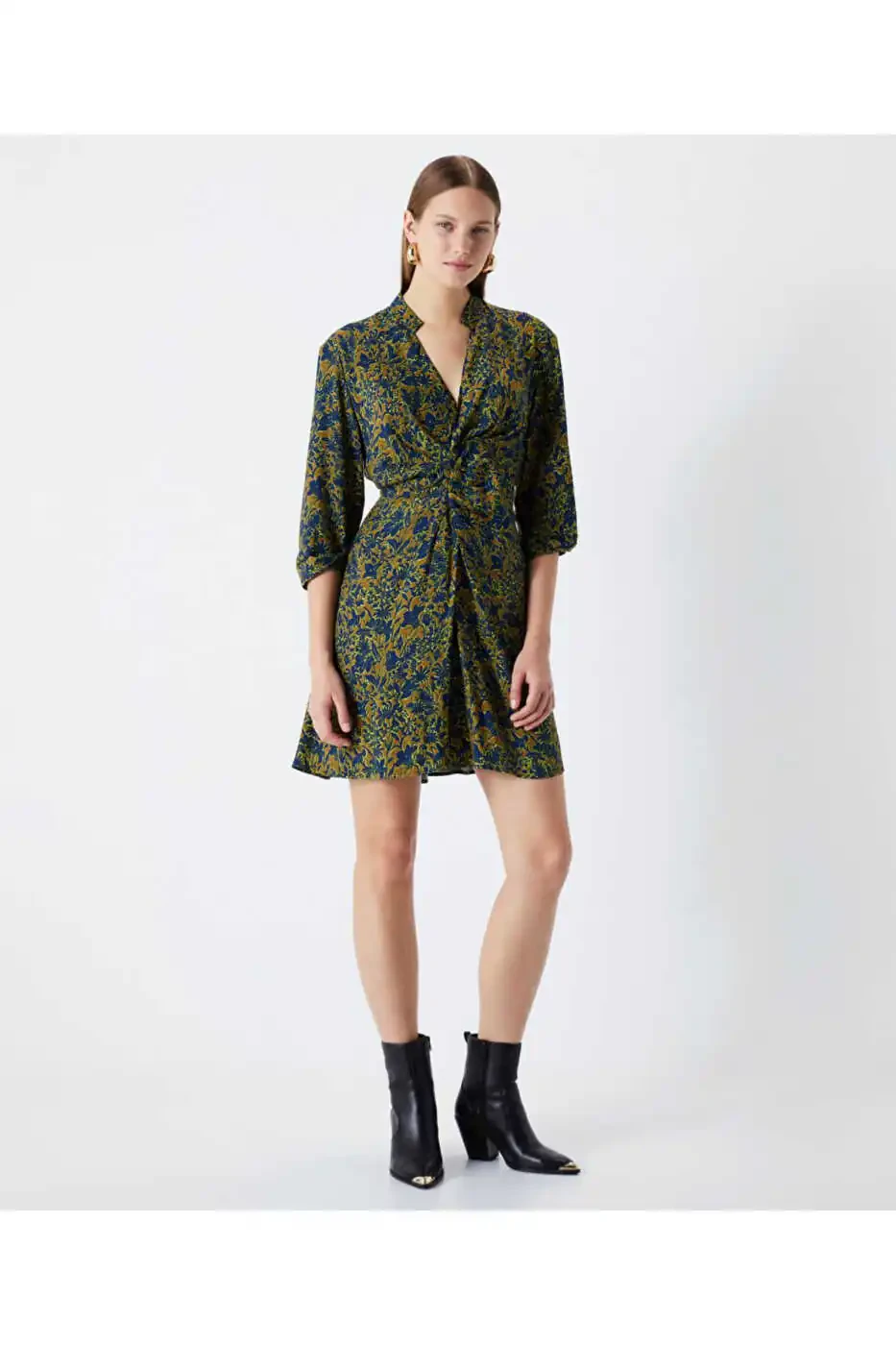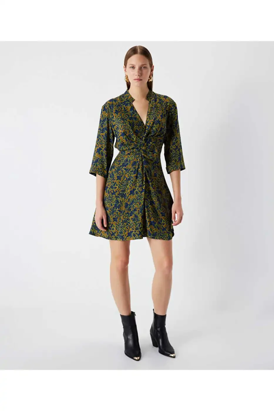 The patterned mandarin collar dress combines style and comfort, making it a must-have for every woman's wardrobe. With its elegant and modern design, this dress will make you look stylish in every environment, from everyday life to special occasions.