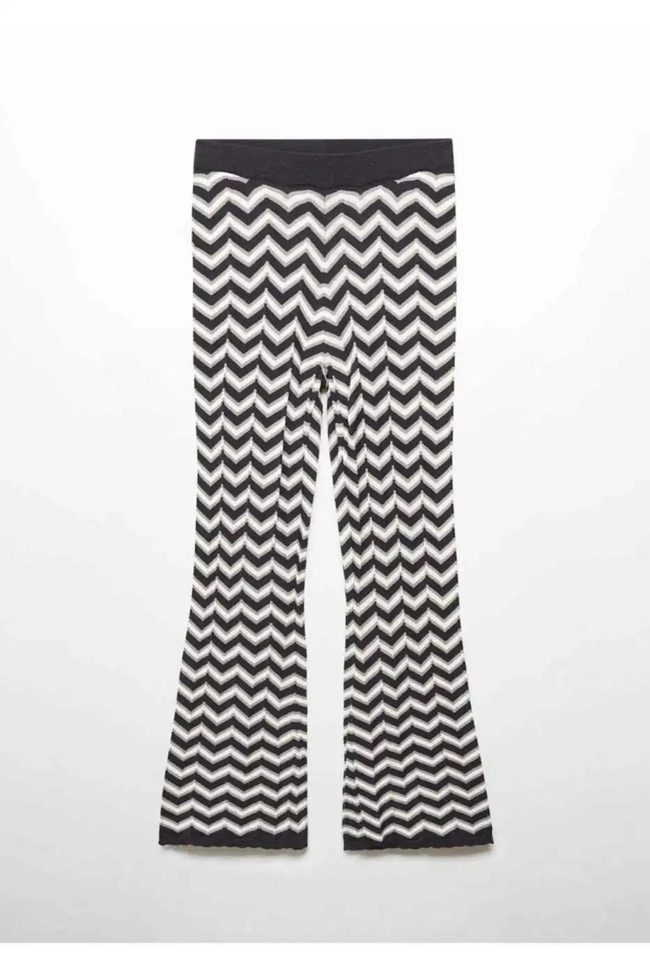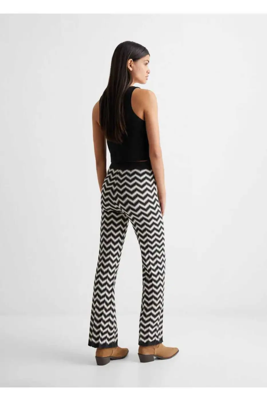 Add a touch of sophistication to your wardrobe with these chic and elegant patterned pants. Their long, flared cut elongates your figure while offering a flattering and comfortable fit. Crafted from a delicate knitted fabric, these pants will keep you comfortable and stylish all day long.
