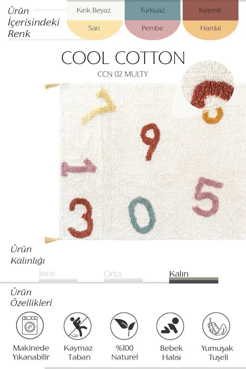 Cotton CCN 02 Multy XW - bu farzandingizga xavfsiz va qulay o'yin maydonchasi yaratish uchun mo'ljallangan, mashinada yuviladigan, sirpanmaydigan chaqaloq gilami. Tabiiy paxta to'qish bilan ishlangan bu gilam yumshoq to'qimasi va nafas oladigan tuzilishi bilan chaqalog'ingizning nozik terisini himoya qiladi.