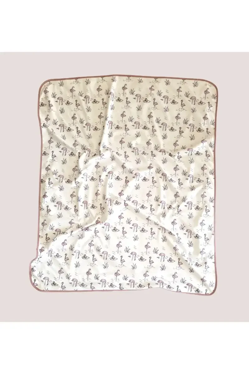 Paxta Ikki Qavatli Triko Yangi Tug'ilgan Chaqaloq Kundak Adyol - Oq/ Flamingo