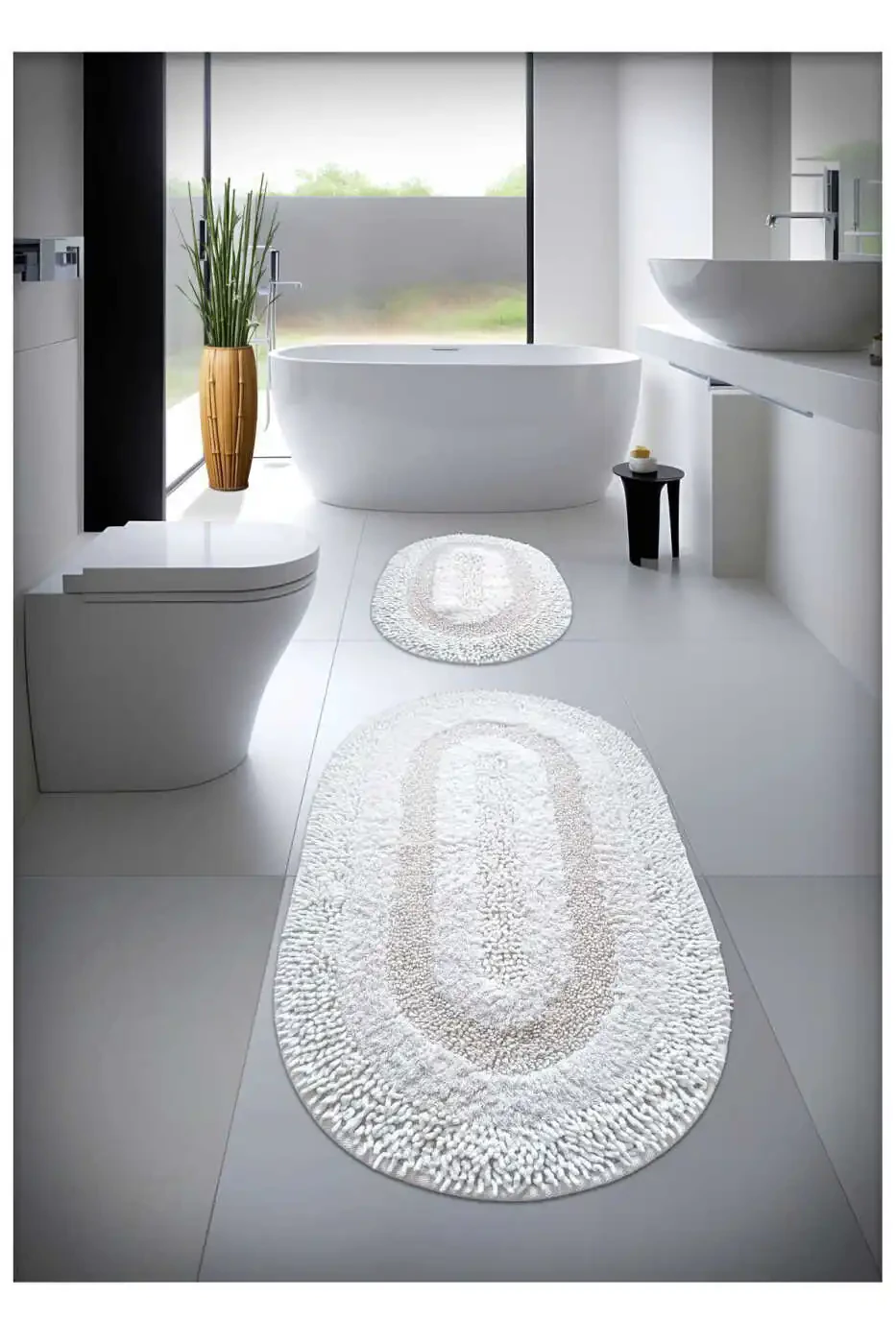 Люкс пахта ванна палас тўплами (2 дона), 12 мм баландликдаги йўноқ, силжимайдиган таглик