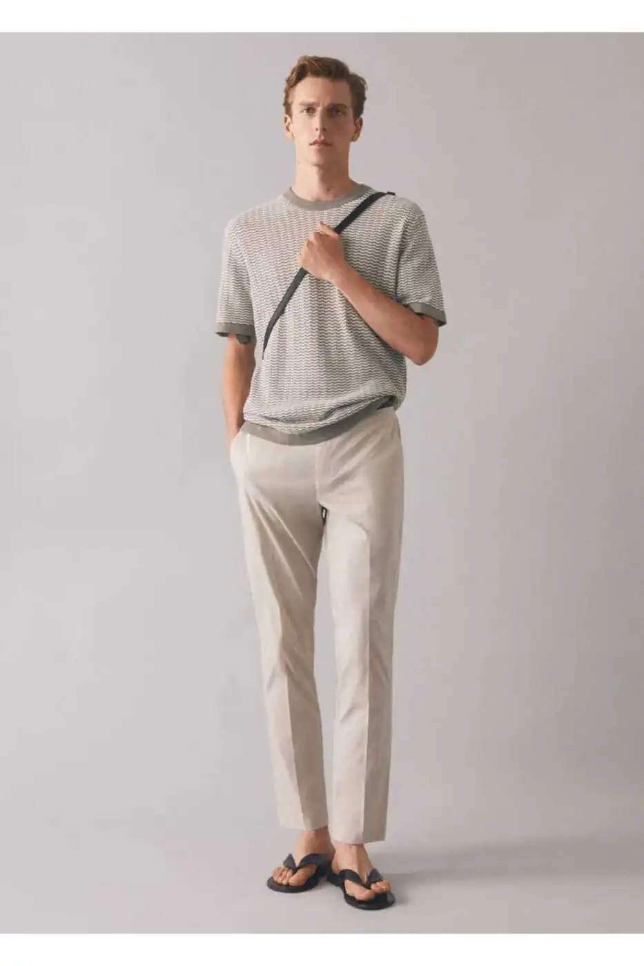 **Paxtadan yengil shimlar: uslub va qulaylikning mukammal uygʻunligi**Trendyol tomonidan tezkor yetkazib beriladigan ushbu paxtadan tayyorlangan yengil shimlar sizning garderobingizga nafislik qoʻshib, kun davomida qulaylik yaratadi. Ular 67% paxta va 33% qayta ishlangan poliesterdan tayyorlangan, bu esa ularni yumshoq, nafas oladigan va bardoshli qiladi.**Naqshli tafsilotlar:*** Tor kesim oyoklaringizni tekislaydi va zamonaviy koʻrinish yaratadi.* Yupqa matolar nafis koʻrinish va birinchi darajali his beradi.* Dukkali tafsilotlar nafis zarb qoʻshib, siluetingizni choʻzadi.* Ikkita tugmali va fermuarli yopiq holda ishonchli va qulay uyum taʼminlaydi.* Kamar koʻprigi shaxsiylashtirilgan uyum uchun kamar qoʻshish imkoniyatini beradi.**Amaliy xususiyatlar:*** Yonbosh choʻntaklar sizning buyumlaringizni ishonchli va osongina olish mumkin boʻlgan joyda saqlaydi.* Qopqoqli va tugmali ikkita orqa choʻntak qoʻshimcha joy ajratadi.* 101,0 sm yon tikuv uzunligi va 73,9 sm ichki tikuv uzunligi balandroq erkaklar uchun mukammal mos keladi.**Parvarish boʻyicha koʻrsatmalar:*** Eng koʻp 30 daraja haroratda mashinada yuving.* Oqartirgichdan foydalanmang.* Eng koʻp 110 daraja haroratda dazmolang.* Quruq tozalashni amalga oshirmang.* Kir yuvish mashinasida quritish mumkin emas.**Model haqida maʼlumot:*** Modelning boʻyi 190 sm va 42 oʻlcham kiygan.