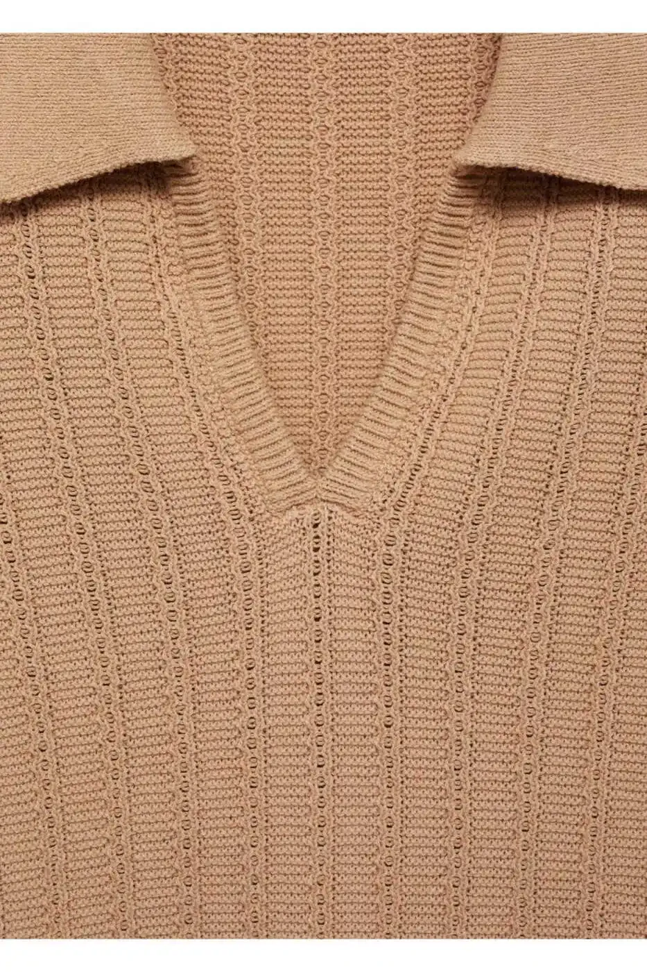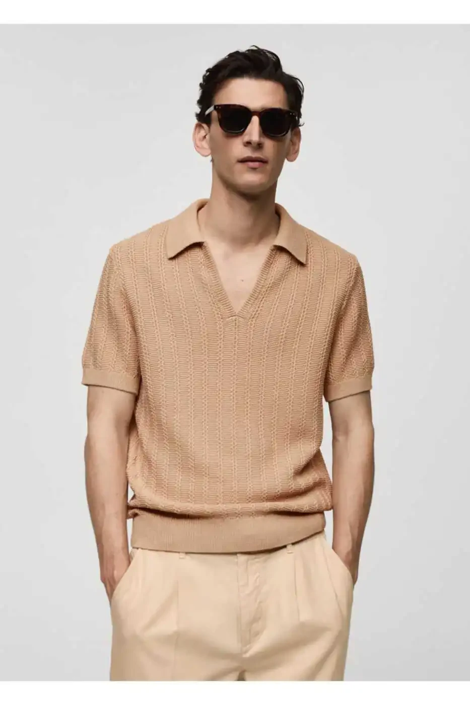 Ushbu zamonaviy va qulay polo futbolka 65% poliester va 35% paxta aralashmasidan tayyorlangan qalin toʻqilgan matodan tikilgan. U klassik polo yoqasi, tugmasiz V shaklidagi yoqa, qisqa yenglar va egiluvchan qirralar bilan bezatilgan. Toʻqilgan dizayn unga nafislik bagʻishlaydi, yoqa, yenglar va pastki qismidagi qovurgʻali detallar esa sportchi koʻrinish yaratadi.