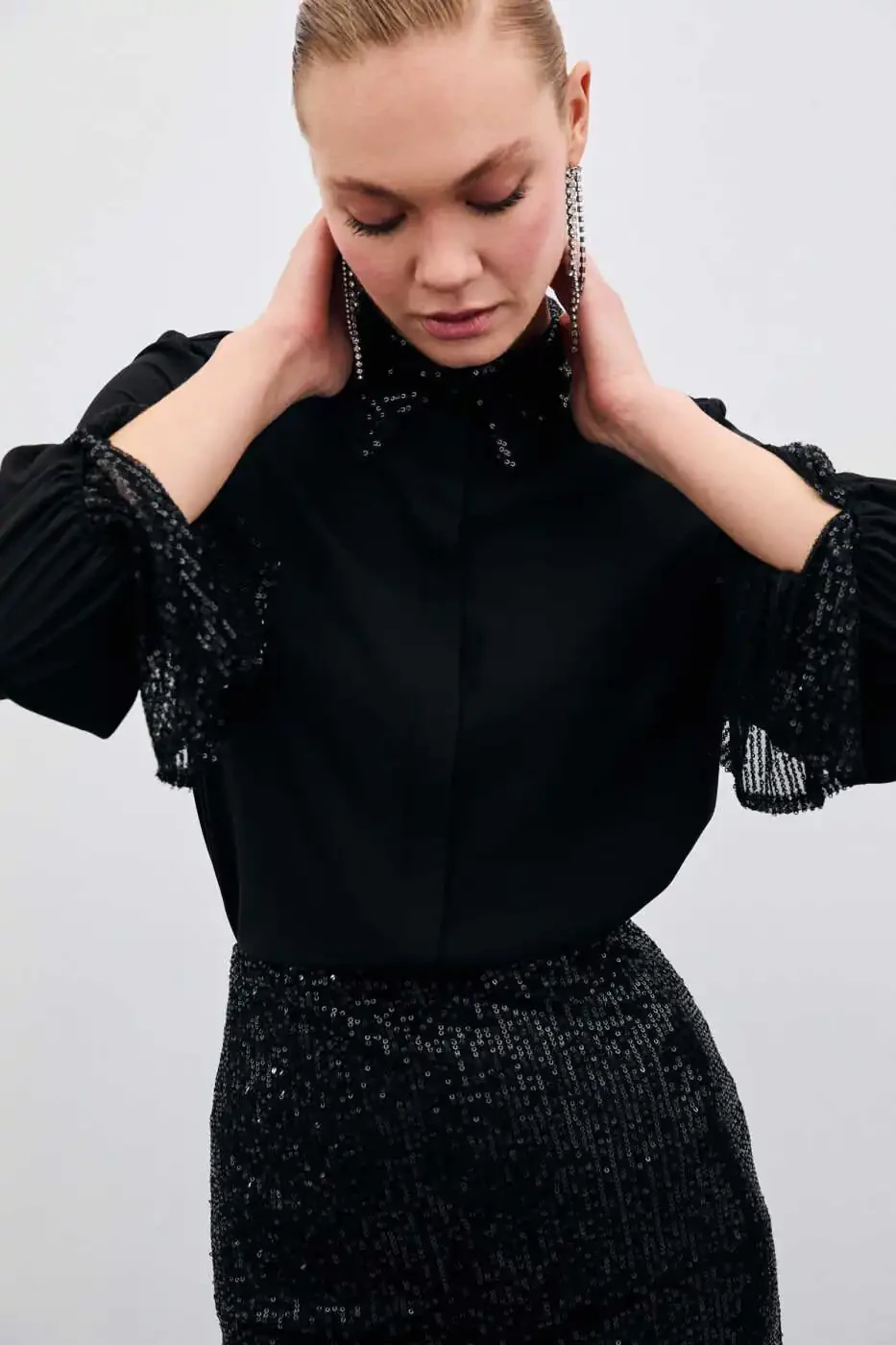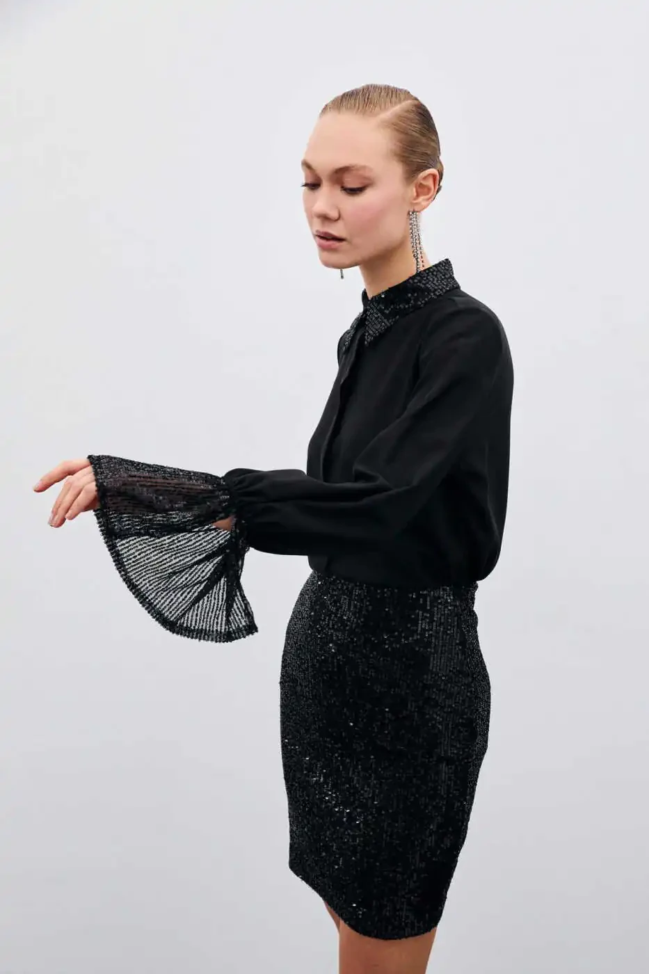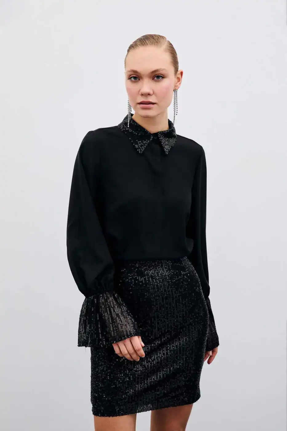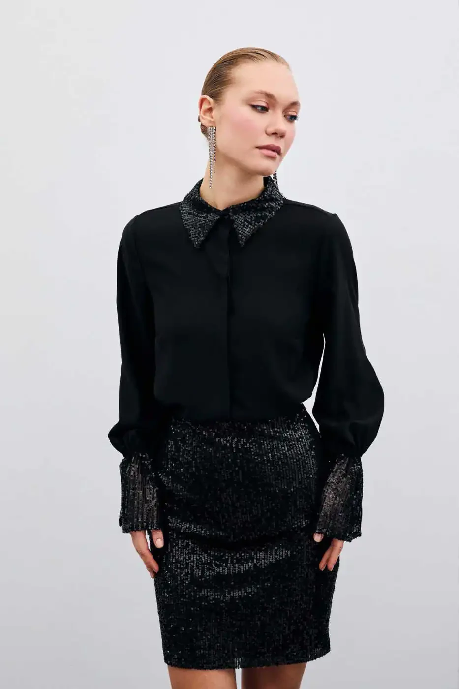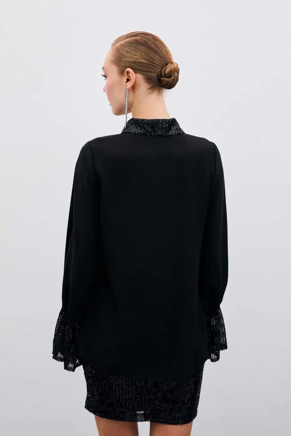 Rasmli Ko'ylak - Qora | Nozik va Zamonaviy Ko'rinish uchun