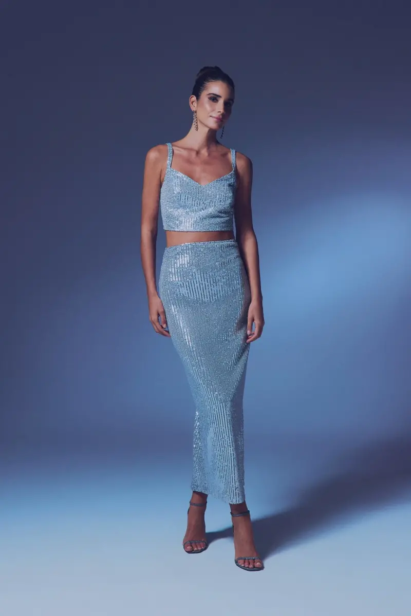 Payetli uzun yubka kumush | Chiroyli kechki yubka | Ko'zni qamashtiruvchi dizayn