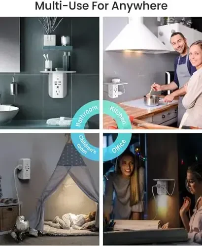 PD20W Wall Outlet Extender is the perfect outlet solution for your home and office. This versatile device goes beyond being a plug-in extender, making your life easier with its smart design and additional features. Say goodbye to the problem of insufficient outlets! The PD20W Wall Outlet Extender converts a single outlet into 5 AC outlets, allowing you to power multiple devices simultaneously. And that's not all; with 3 USB-A ports and a state-of-the-art USB-C port, you can charge your smartphones, tablets, headphones, and other USB-charging devices directly without plugging them into an outlet. Save time with PD20W fast charging. The wide-spaced outlet design ensures that even large adapters can be plugged in without any problems. No more struggling to fit adapters into outlets! Thanks to its compact and stylish design, it blends in with your room's decor while helping you save space. One of the most notable features of the PD20W Wall Outlet Extender is its built-in shelf. This shelf provides a safe place to put your phone, tablet, or other small items while charging. This eliminates the risk of your devices falling or getting damaged, and prevents clutter. The night light feature guides you in dark environments, providing a soft and relaxing light. Thanks to energy-efficient LED technology, energy consumption is minimal even if the night light is left on continuously. It helps you create a safe and comfortable environment at night. Safety has been prioritized in the design of the PD20W Wall Outlet Extender. It is equipped with advanced security features such as overcurrent protection, overvoltage protection, and short circuit protection. In this way, it ensures the safety of your devices and your home at the highest level. The PD20W Wall Outlet Extender is not just an outlet extender, but also a smart home accessory. It is designed to make your life easier, solve outlet problems, and maximize safety.