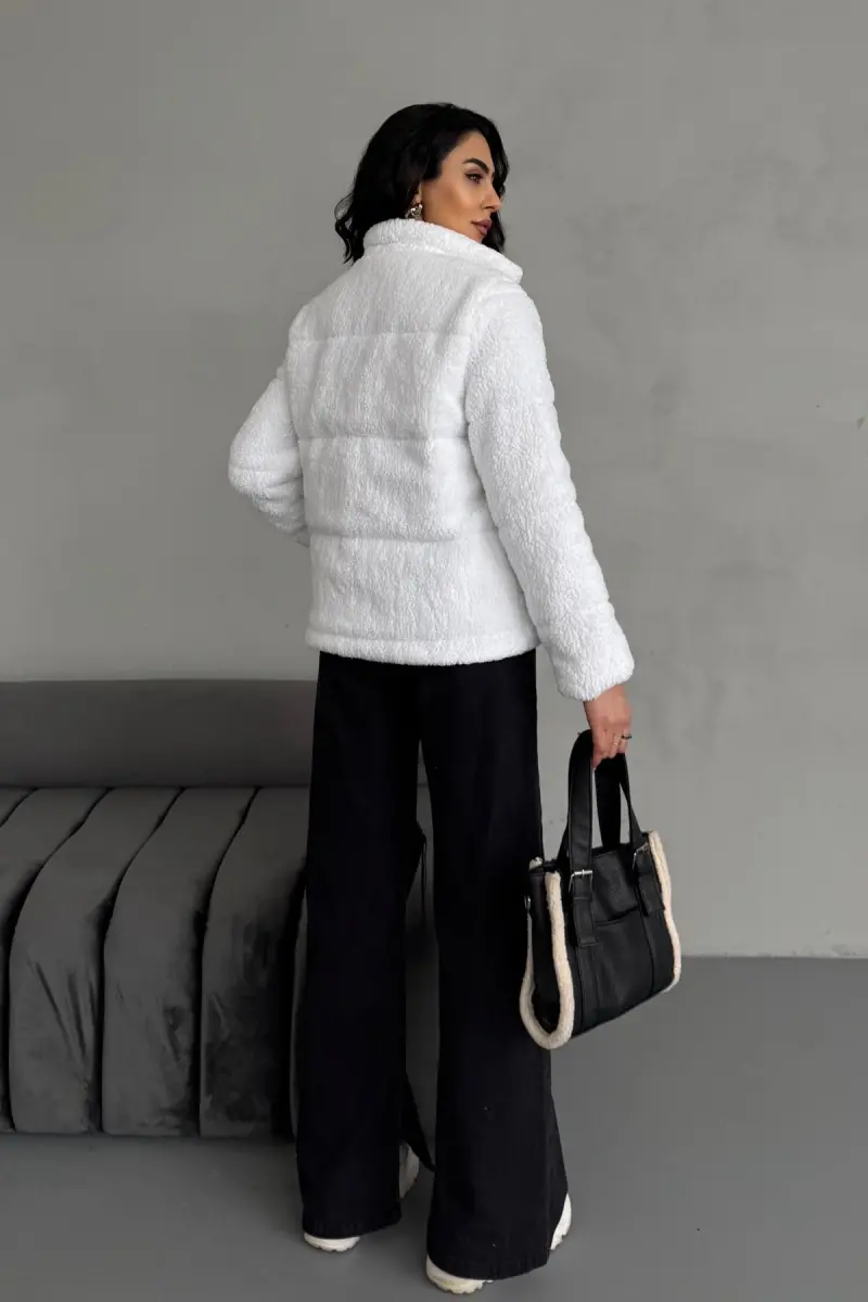 Peluş kabartma teddy shishirma mont ekru oq-ekru oq