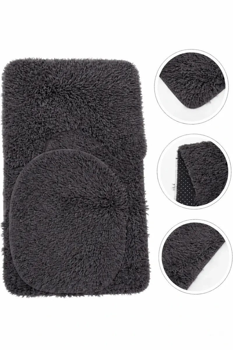 Peluş Kaymaz Yıkanabilir Banyo Paspası Klozet Takımı 3'Lü 50x80/50x60/40x45(klozt kapağı)-Antrasit