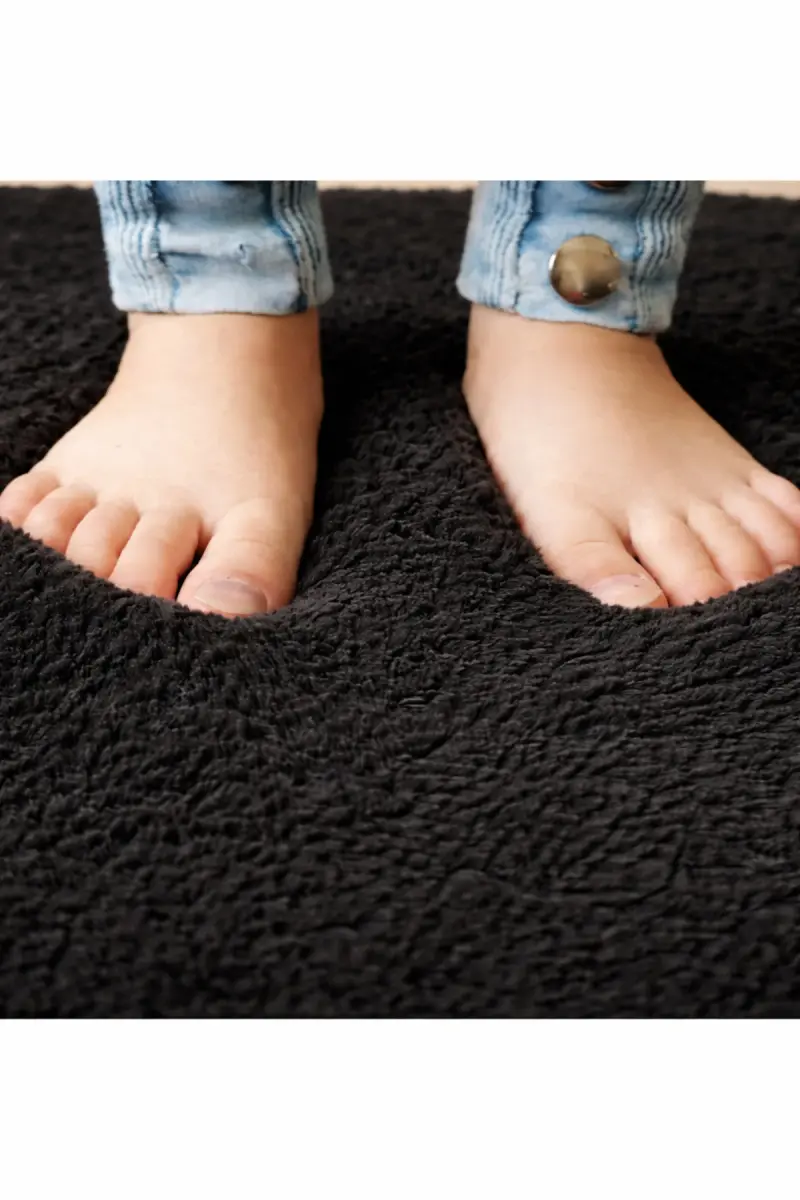 Peluş Yıkanabilir Siyah Kaymaz Taban 2'li Banyo Paspası Takımı (50X80 50X40)-Siyah