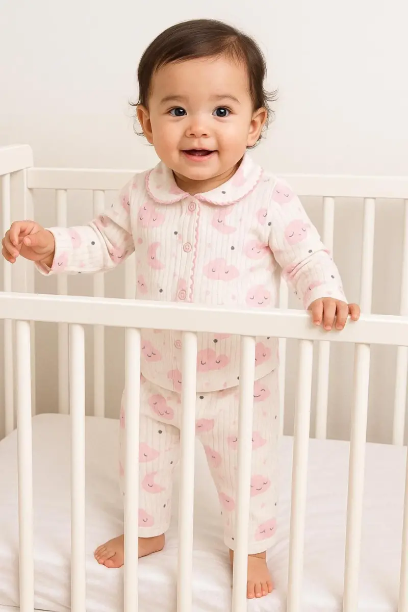 Pembe Ay yıldız bulutlu Pamuk kız bebek takım-Pembebulutlu