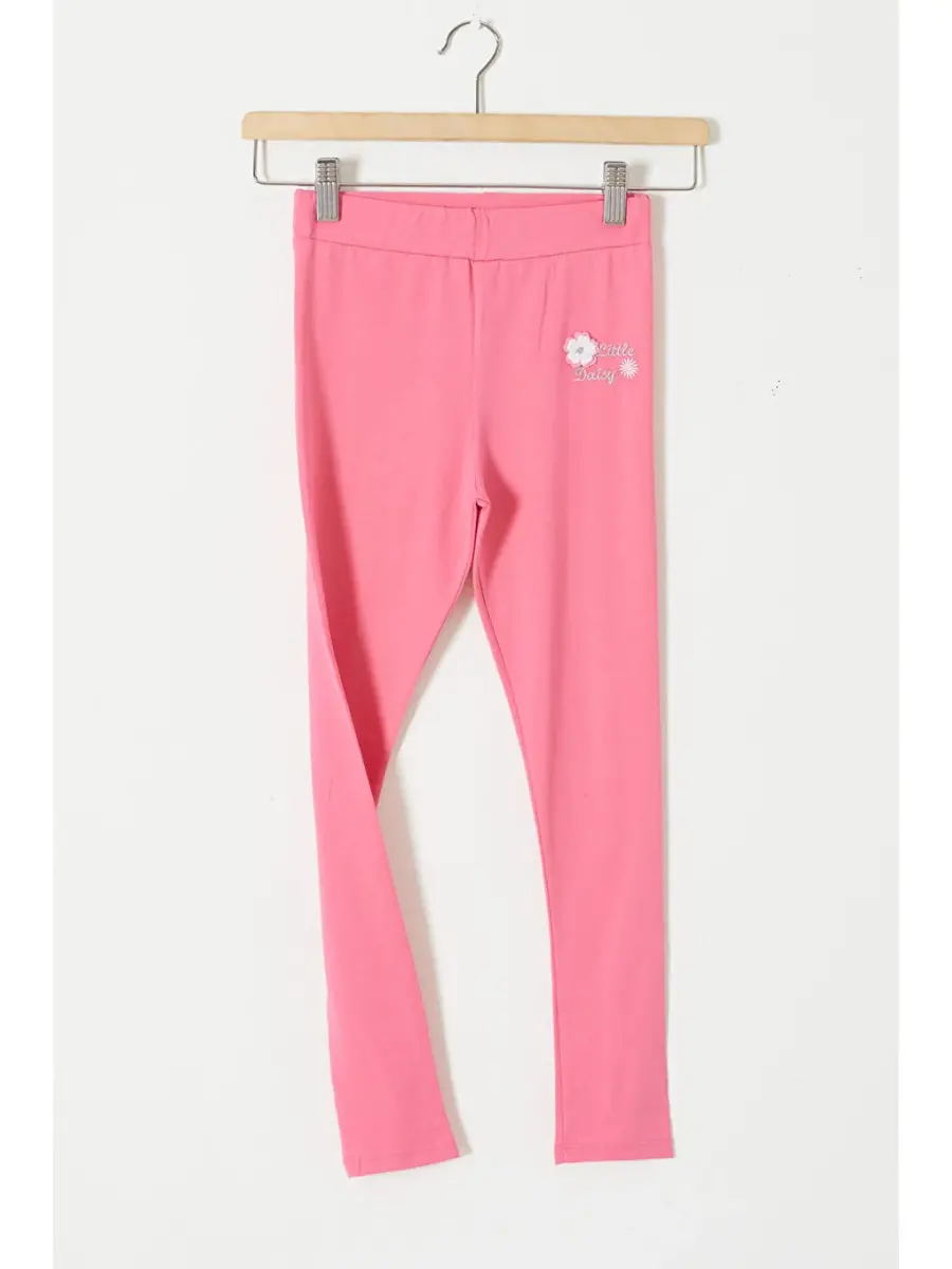 Pembe Çiçekli Kız Çocuk Tayt | Cansın Mini Timi Kids | Pamuklu, Nakışlı, Rahat ve Şık!