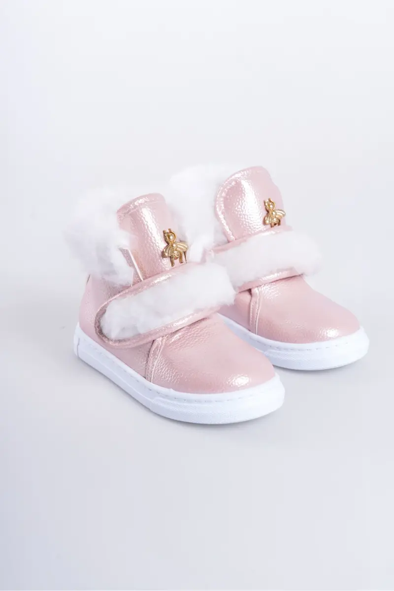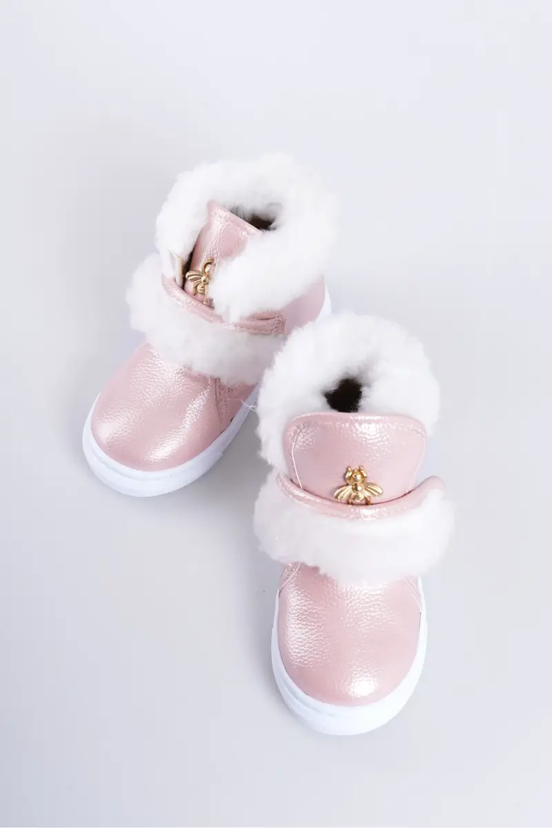 Pembe Parlak Kürklü Arı Detaylı Cırtlı Kaymaz Taban Kız Çocuk Bot-Pembe