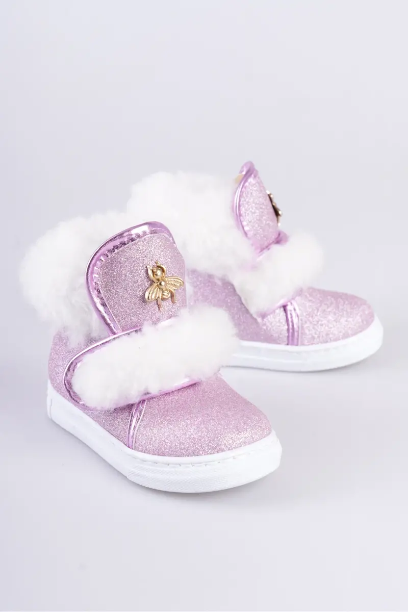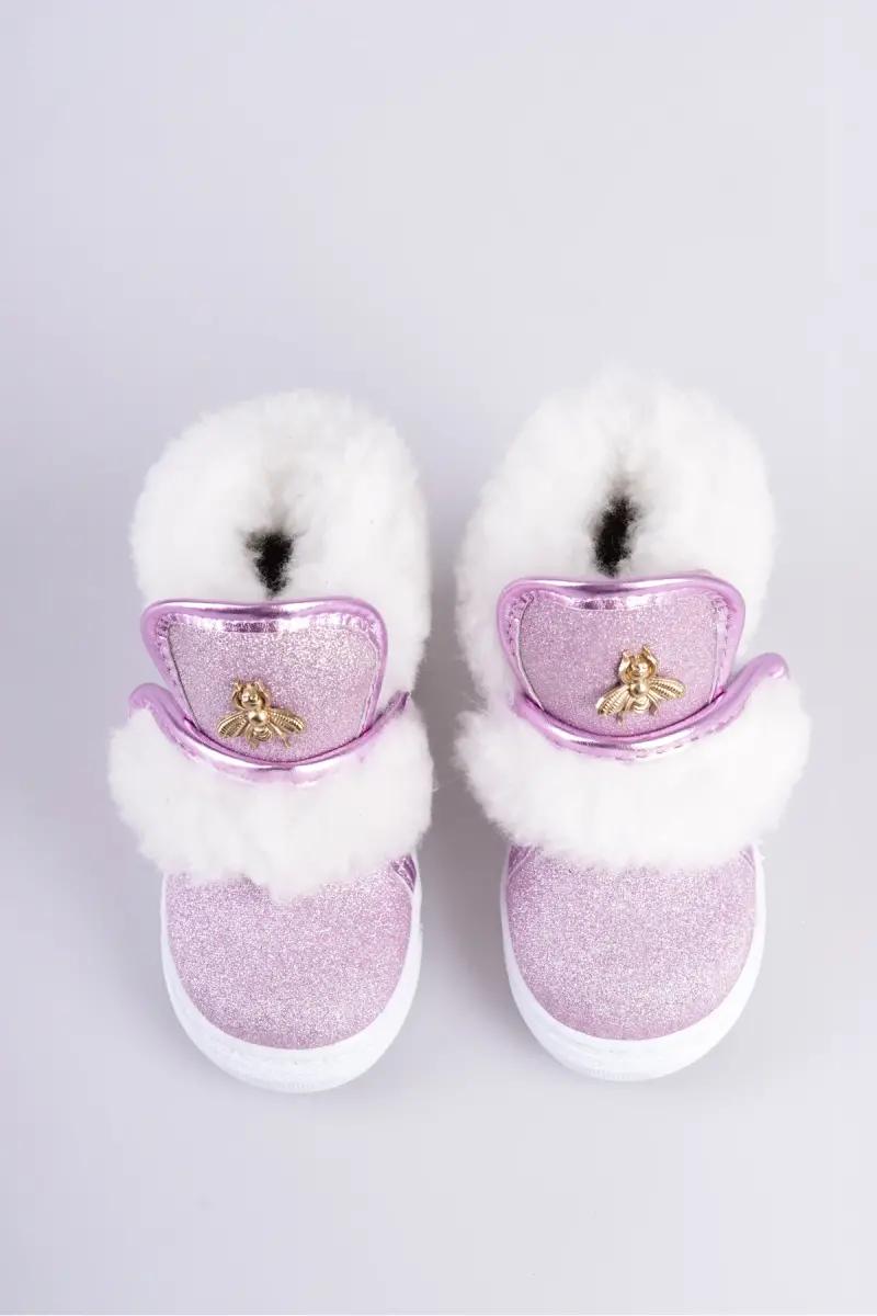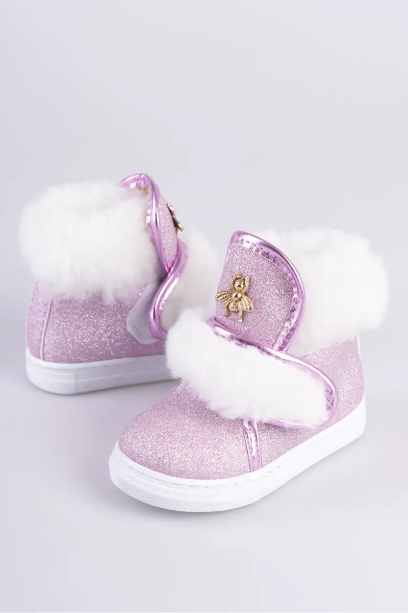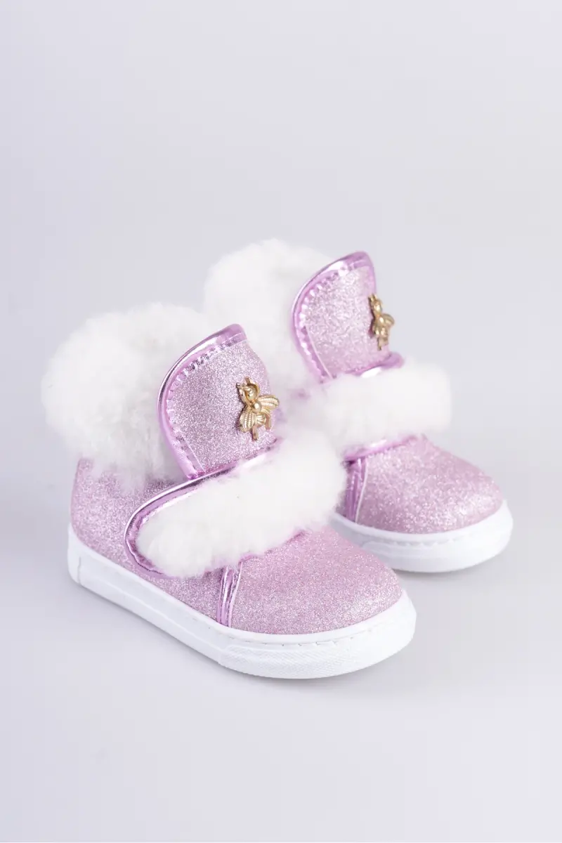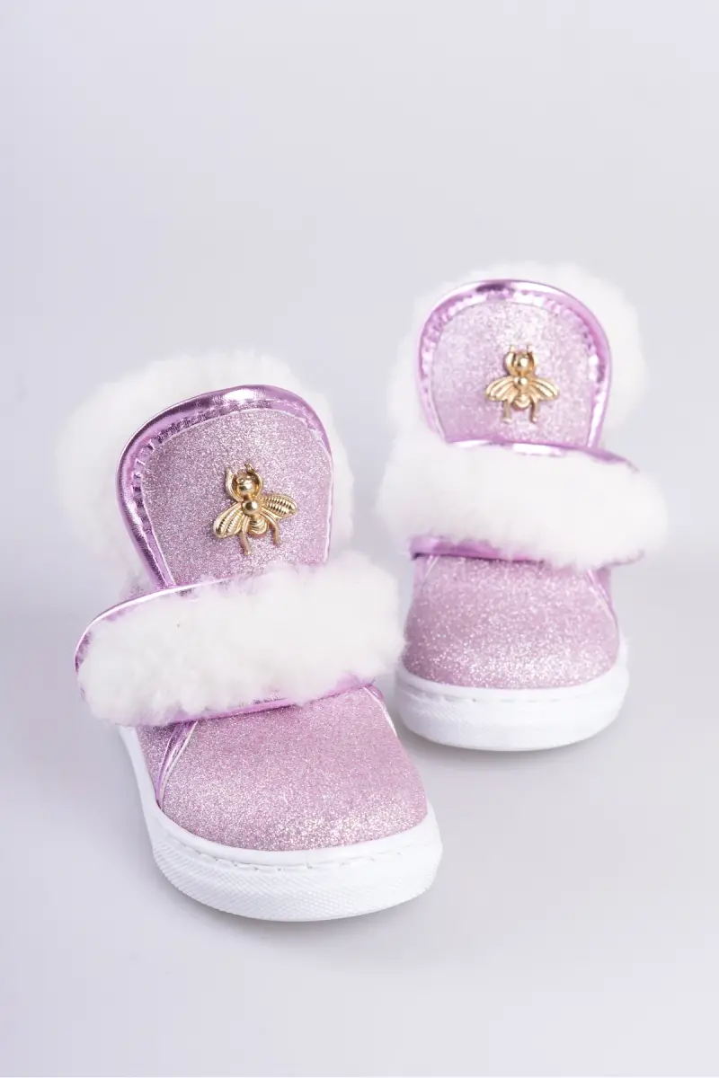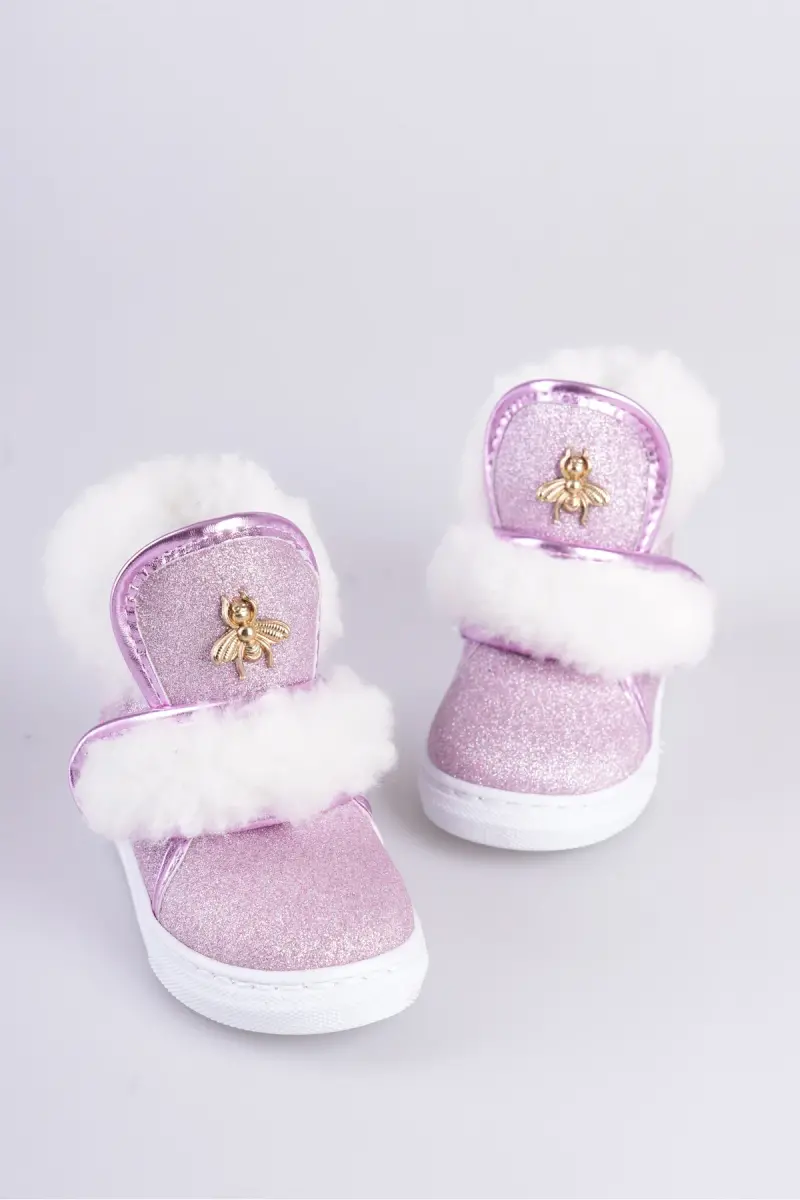 Pembe Simli Kürklü Arı Detaylı Cırtlı Kaymaz Taban Kız Çocuk Bot-Pembe Sim