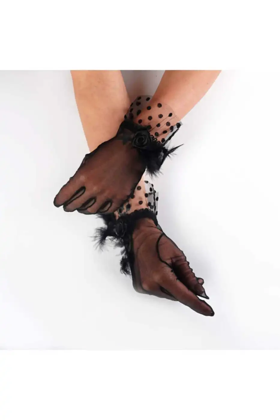 Если вы ищете идеальный аксессуар, чтобы создать потрясающий образ на свадьбе, наши черные перчатки для невесты с перьями - это именно то, что вам нужно! С ноткой элегантности и загадки они добавят изысканности и шика вашему свадебному платью.