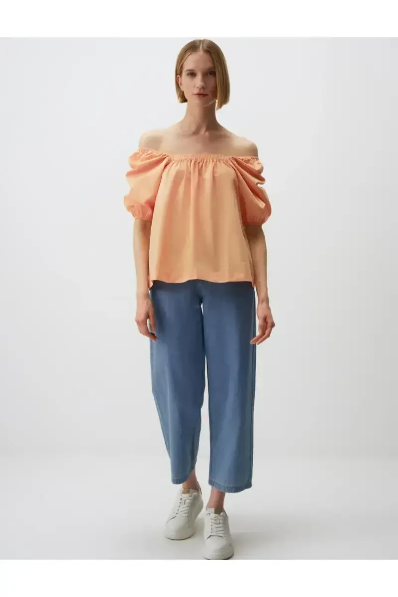 Персиковая хлопковая блузка: квадратный вырез, рукава-фонарики - летняя непринужденная элегантность!