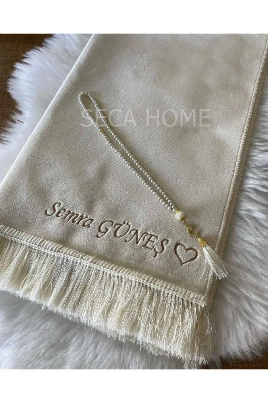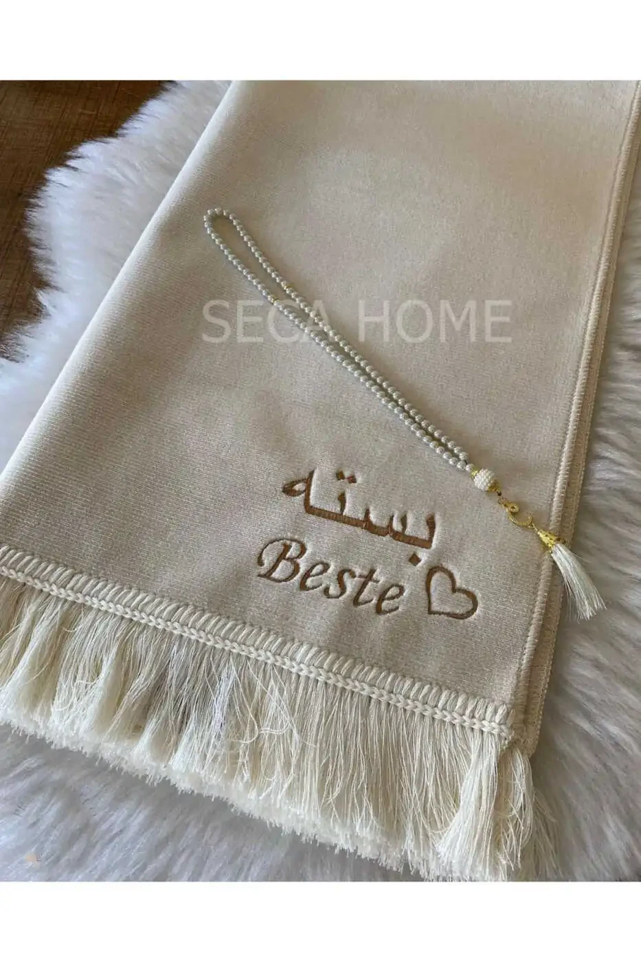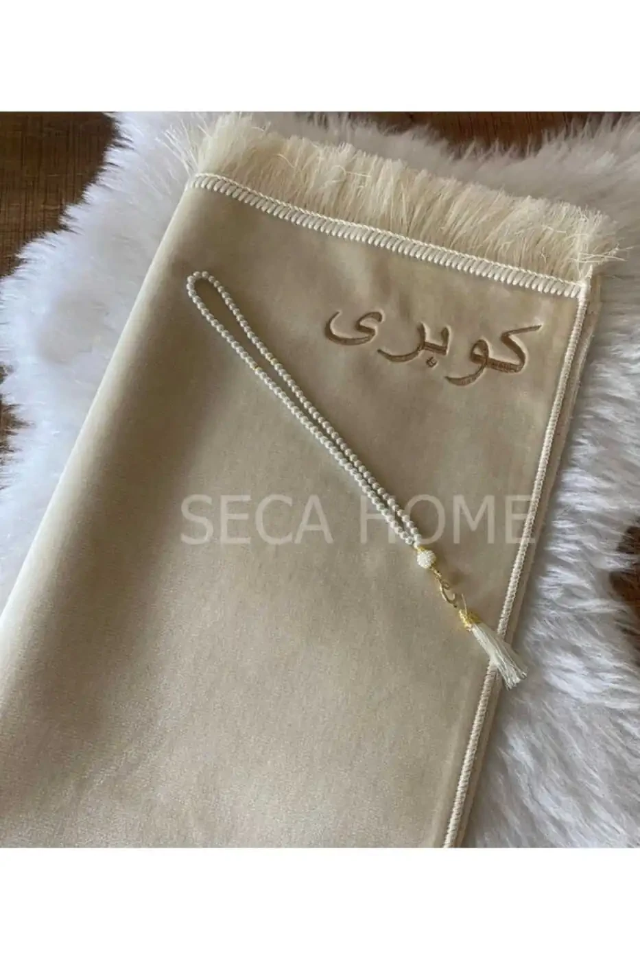 Make your prayer times more special and meaningful with a personalized luxury velvet prayer rug. Made from smooth velour fabric, this elegant rug will captivate you with its graceful appearance and soft texture. The name embroidered on the rug will add a personal touch to it and make it an unforgettable gift option for your loved ones.