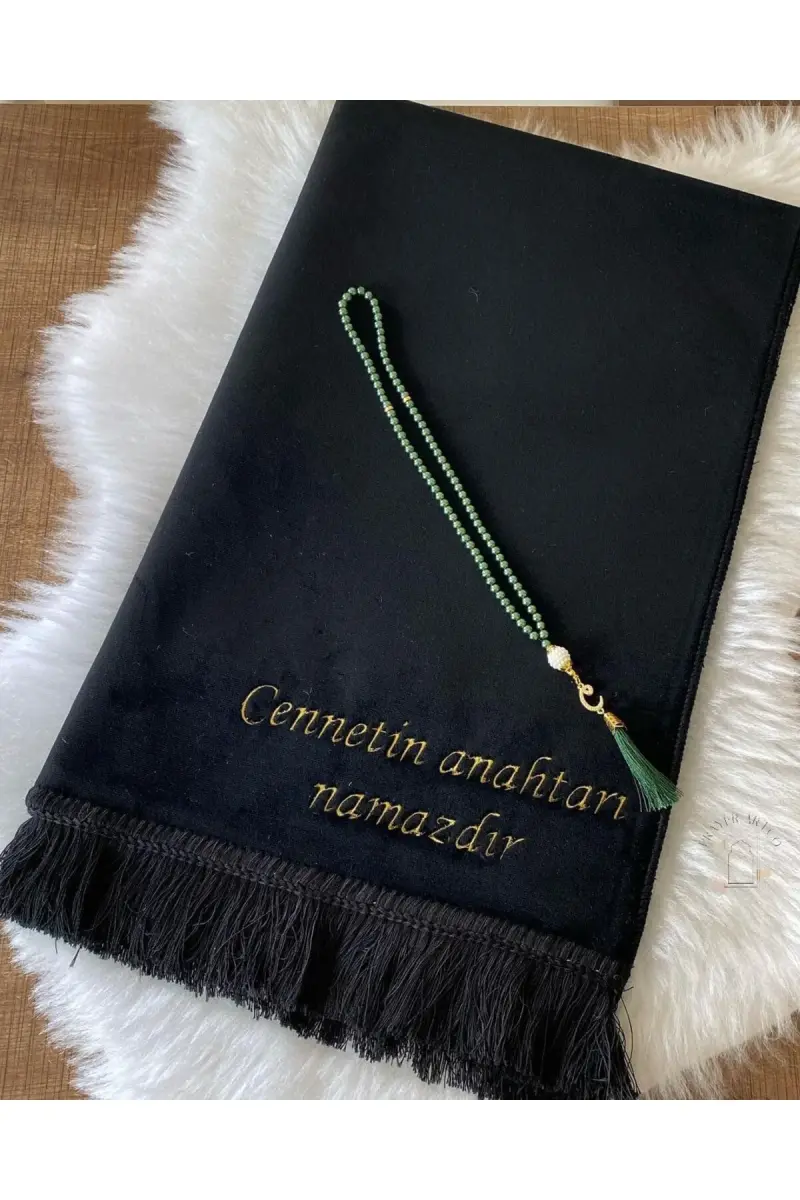 Personalized Luxury Velvet Prayer Rug with Name, Plain Velour Prayer Rug with Name Embroidery, Bridal Gift Prayer Rug - Black. Our product is made of first-class velvet fabric. It is prepared perfectly with laser cutting technology. Name embroidery is carefully crafted with high-quality threads. Our prayer rug offers comfortable use thanks to its soft texture. It is an excellent choice as a dowry or gift. The dimensions of the prayer rug are standard and suitable for use by people of all ages. The black color gives the prayer rug a noble and stylish look.Product DescriptionMeet our personalized luxury velvet prayer rug, designed to make your worship more special and meaningful. The Personalized Luxury Velvet Prayer Rug with Name is not just a tool for worship, but a carefully crafted work of art that reflects your spiritual values. This prayer rug, which offers a unique gift option with its plain velour surface and name embroidery, is a candidate to be an indispensable part of dowry chests. The soft texture of first-class velvet fabric provides peace and comfort during prostration, while its perfect lines thanks to laser cutting technology offer an aesthetic appearance. Name embroidery is meticulously crafted with high-quality threads and adds a personal touch to your prayer rug. Whether it bears your own name or the name of your loved ones, this prayer rug makes your worship more meaningful and unforgettable. The nobility of black and the luxury of velvet come together in this prayer rug, which is not only a tool for worship but also an expression of lifestyle. Our prayer rug, produced in standard sizes, is designed to be easily used by people of all ages. You can use this prayer rug both in your daily worship and on special occasions, and it will enrich your spiritual atmosphere and inspire you. If you want to give your loved ones an unforgettable gift, the Personalized Luxury Velvet Prayer Rug with Name is an excellent choice. You can present your loved ones with a spiritually valuable gift on special occasions such as birthdays, wedding anniversaries, Ramadan Feast, and Eid al-Adha. This prayer rug, which is also a unique option for young girls preparing dowries, will accompany them from the first day of their marriage and will be a meaningful memento that will last a lifetime. Make your worship more special with the Personalized Luxury Velvet Prayer Rug with Name, share your spiritual values with your loved ones and add meaning to your dowry chests. This unique prayer rug is not just a product, but also an expression of love, a means of prayer and a memory.Product Features* First class velvet fabric is used.* Produced with laser cutting technology.* Name embroidery is made with high quality threads.* It offers comfortable use thanks to its soft texture.* Produced in standard sizes.* Black color provides a noble and stylish look.* Ideal as a dowry and gift.* Personalized name can be written.* Suitable for all age groups.* Suitable for daily and special occasions.Additional InformationThe prayer rug should be cleaned by gently wiping with a damp cloth. Bleach or chemical-containing cleaning agents should not be used. Ironing should be done inside out and at low temperature to avoid damage to the embroidered part. The product is carefully packaged and shipped.