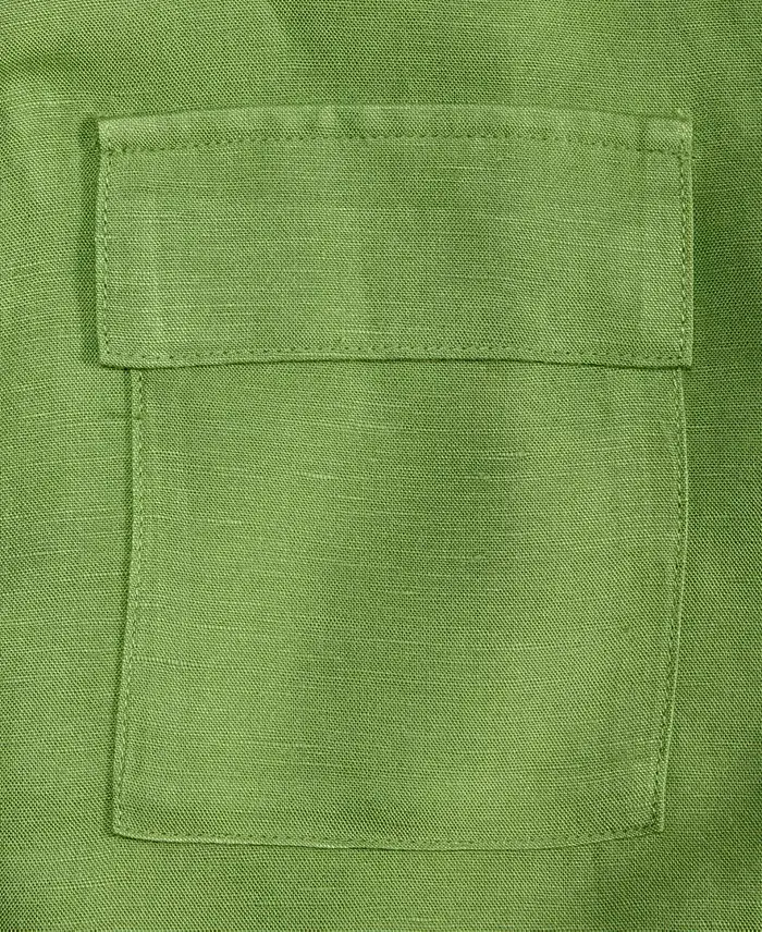 Petite Linen-Blend Short-Sleeve Button-Front Shirt, Exclusively at Modazone - Fresh Basil