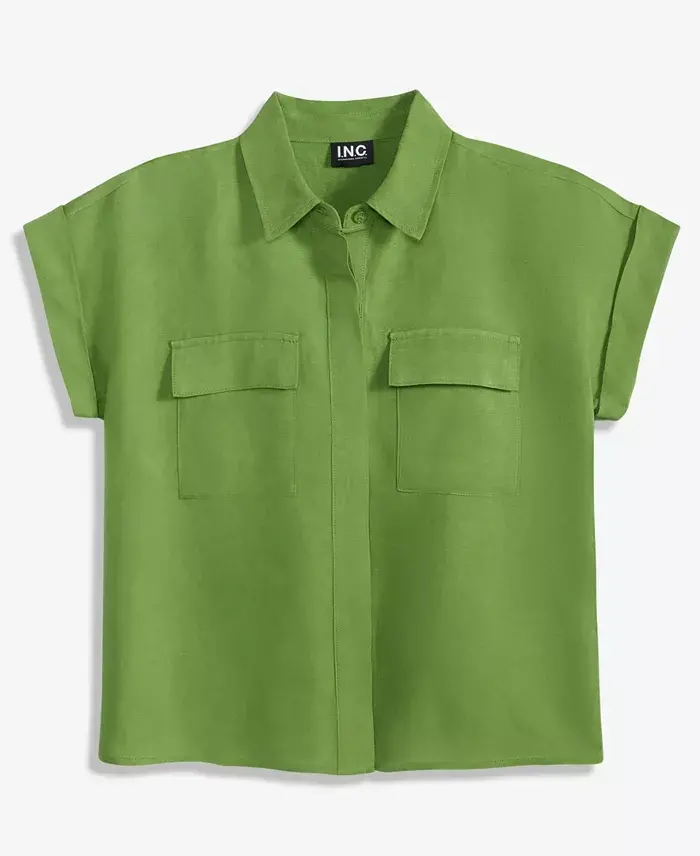 An easy choice for warmer days, this lightweight linen blend petite shirt from I.N.C. International Concepts® is a versatile essential for your collection. Relaxed fit; hits at hip; approx. 23-1/2" long Designed to fit and flatter frames 5'4" and under Point collar; button closures at front Patch pockets at chest Modazone Exclusive Linen,viscose Machine wash Imported