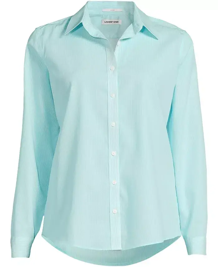 The Lands End Women s No Iron Supima Cotton Long Sleeve Shirt combines the stylish versatility of a classic men's oxford dress shirt with the comfort and ease of soft Supima cotton. Made with your shape and fit in mind the smooth top-notch finishing like clean-finished seams dart shape back and gauntlet style buttons create the tailored lines and flattering silhouette you expect in a dress shirt while the fine Supima fibers and fun patterned prints bring an element of simple pleasure you usually only get to experience on the weekends or from your sleepwear. Our softest-ever no iron finish Fine dress shirt details like clean-finished seams and gauntlet buttons Back darts shape the shirt Shirt fit: Tailored Fit. Garment Closure: Front Button Down. Garment Neckline: Collared. Approx Length: 27 inches. 100% cotton Machine washable Imported