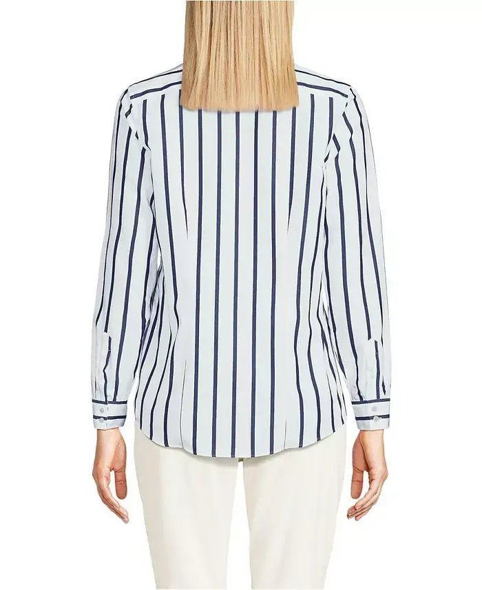 The Lands End Women s No Iron Supima Cotton Long Sleeve Shirt combines the stylish versatility of a classic men's oxford dress shirt with the comfort and ease of soft Supima cotton. Made with your shape and fit in mind the smooth top-notch finishing like clean-finished seams dart shape back and gauntlet style buttons create the tailored lines and flattering silhouette you expect in a dress shirt while the fine Supima fibers and fun patterned prints bring an element of simple pleasure you usually only get to experience on the weekends or from your sleepwear. Our softest-ever no iron finish Fine dress shirt details like clean-finished seams and gauntlet buttons Back darts shape the shirt Shirt fit: Tailored Fit. Garment Closure: Front Button Down. Garment Neckline: Collared. Approx Length: 27 inches. 100% cotton Machine washable Imported