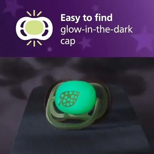 Help your baby fall into a comfortable and peaceful sleep throughout the night with Philips Avent Ultra Air Nighttime Pacifiers. Specially developed for babies aged 18 months and older, these pacifiers gently touch your baby's delicate skin while supporting healthy teeth and palate development with their orthodontic structure. Equipped with a glow-in-the-dark feature for easy location at night, Ultra Air Nighttime pacifiers provide great convenience when your baby's sleep is interrupted. You can find the pacifier and give it to your baby in just a few seconds, helping them calm down and fall back asleep.One of the most important features of Philips Avent Ultra Air Nighttime pacifiers is the extra-hard silicone nipple. This special design provides resistance against your baby's chewing habits, ensuring the pacifier lasts longer. In addition, the symmetrical structure of the pacifier guarantees that your baby is always in the correct position, regardless of which way they put the pacifier in their mouth. This is important for your baby's dental and palate health.All Ultra Air Nighttime pacifiers are made from BPA-free, high-quality materials. Your baby's health and safety is always our priority. For this reason, our pacifiers are manufactured and tested according to the strictest safety standards.The package includes 4 pacifiers and 2 sterilization cases. This way, you can always keep the pacifiers clean and hygienic. Sterilization cases allow you to easily sterilize pacifiers in the microwave, so you can easily provide the hygienic conditions needed to protect your baby's health. Philips Avent Ultra Air Nighttime Pacifiers help improve your baby's sleep patterns while also providing you with a peaceful night's sleep. Make the best choice for your baby's comfort and health, try Philips Avent Ultra Air Nighttime pacifiers!
