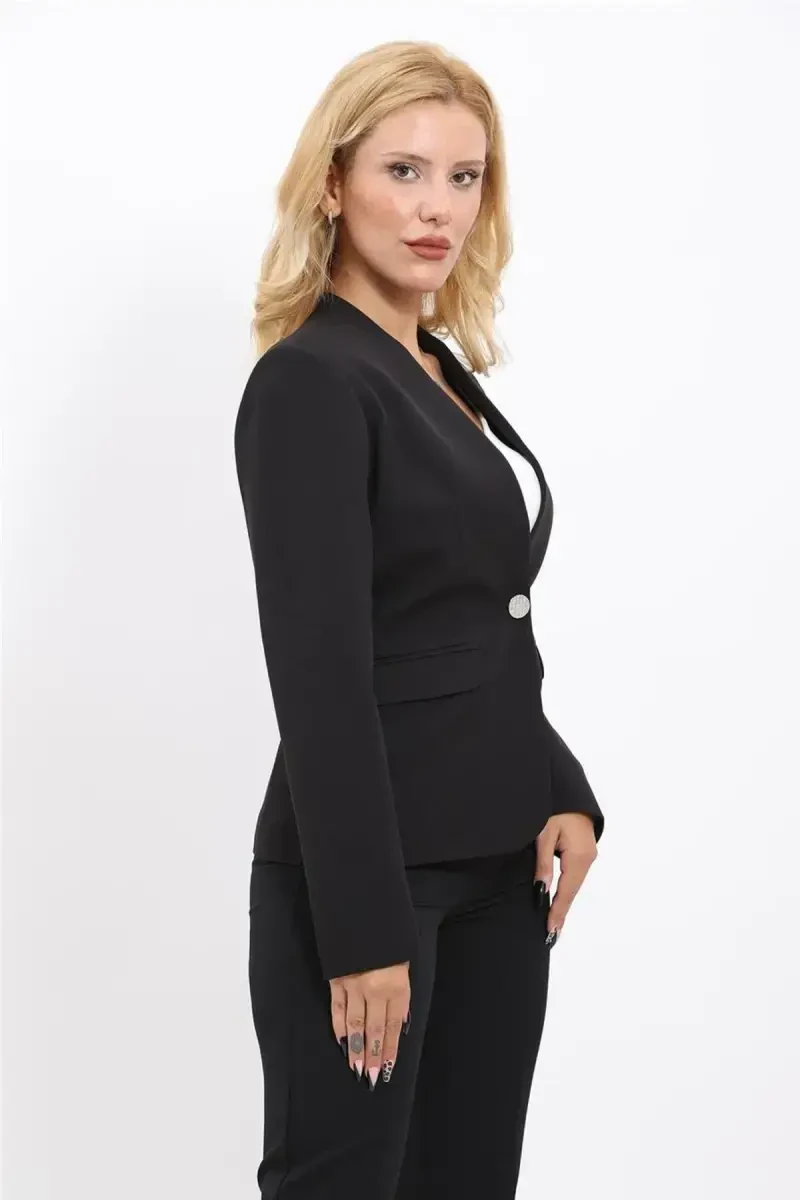 Пиджак без воротника на одной пуговице & брюки-сигареты - Черный | Элегантность и стиль