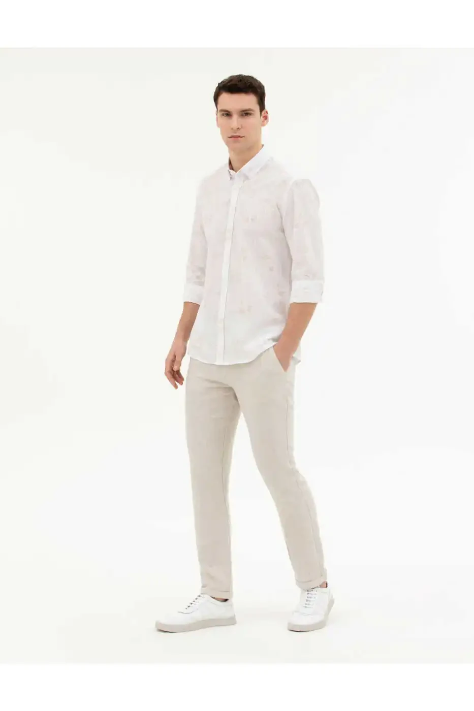 Pierre Cardin Men's Chinos Slim Fit Linen Trousers G021SZ078.000.1887750 ELENA 011 Beige offers a variety of styling options to suit every taste and style. Pair them with a t-shirt, shirt, or polo to achieve a stylish look for everyday life or special occasions. The light color adds elegance to your summer outfits, while the breathable nature of linen fabric ensures you stay comfortable all day long.