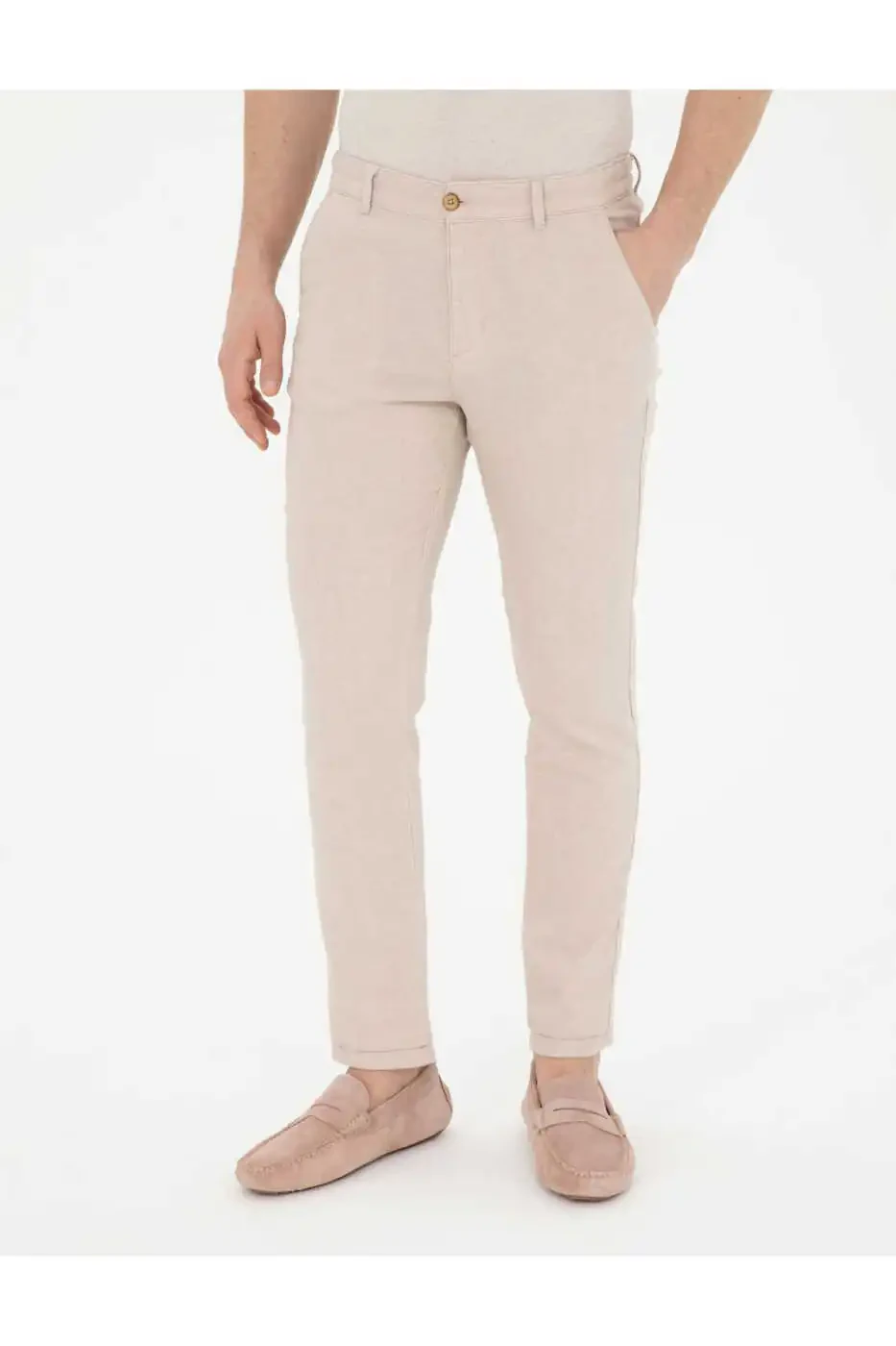 Combining style and comfort, the Pierre Cardin Men's Chinos Slim Fit Linen Trousers G021SZ078.000.1844077 Ramon is the perfect choice for completing your style in the summer months. Made from lightweight and breathable linen fabric, the trousers offer a comfortable feel while also attracting attention with their stylishness. The slim fit cut, which fits your body perfectly, gives you a modern and stylish look.